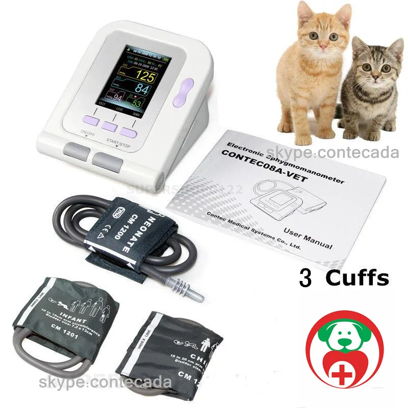 Американский ветеринарный прибор для измерения артериального давления с 3 свободными манжетами, цветной ЖК-дисплей, НИАД CONTEC08A-VET