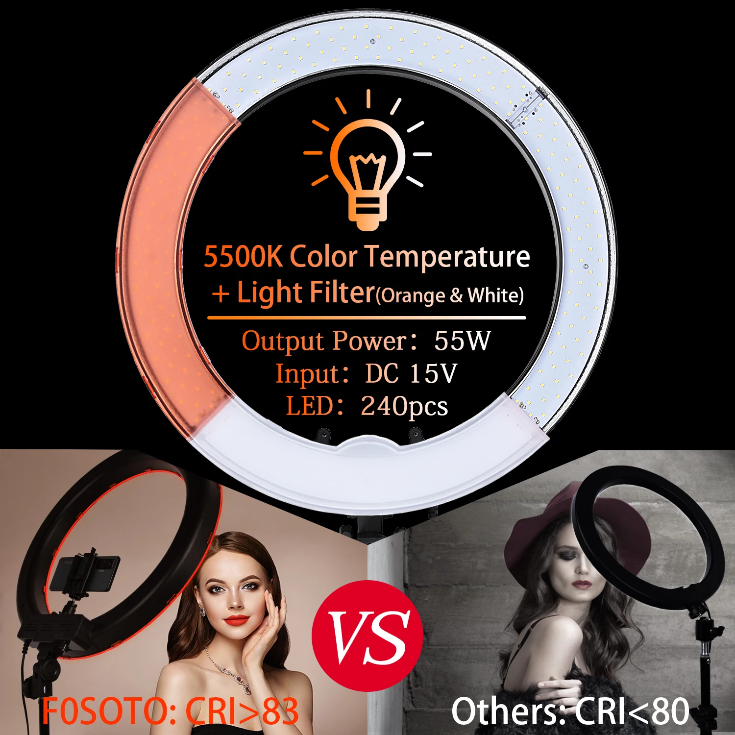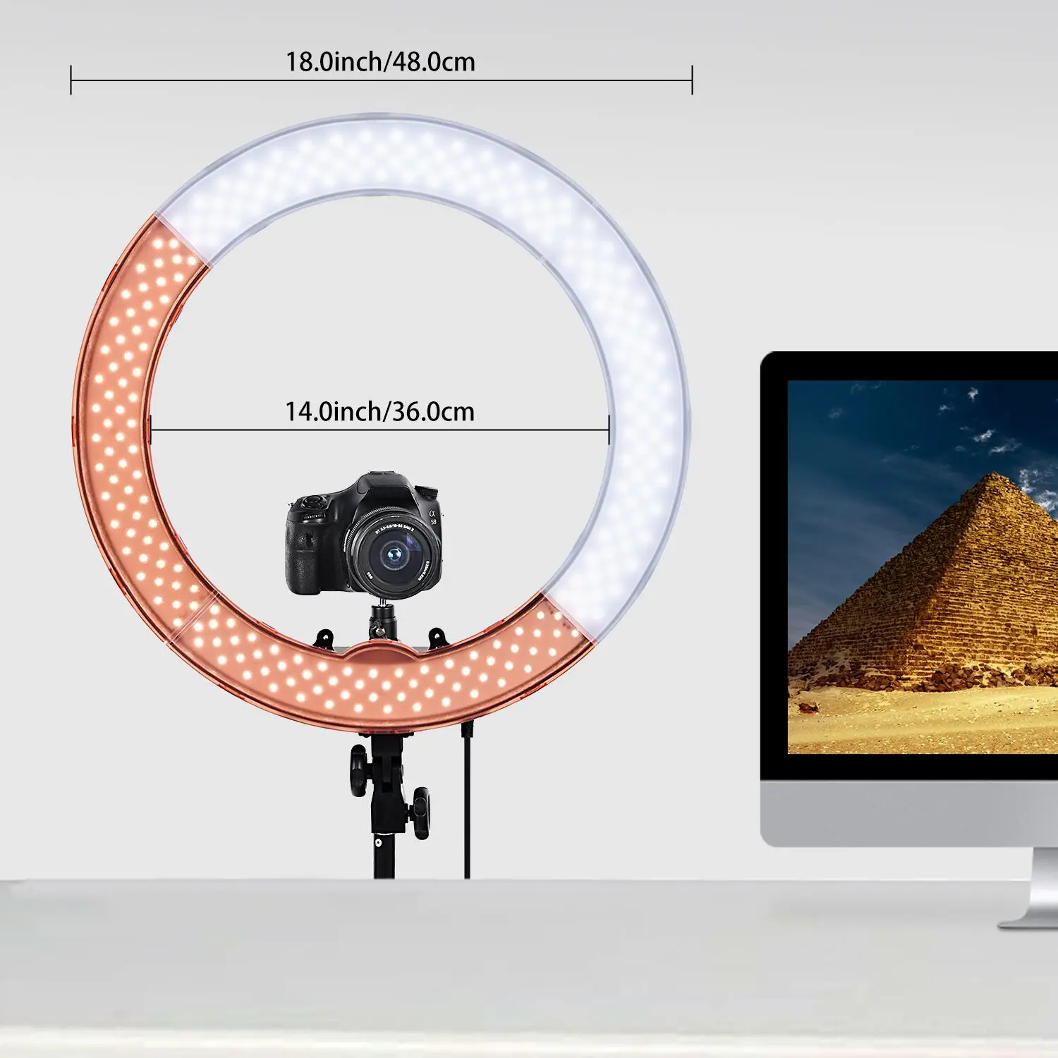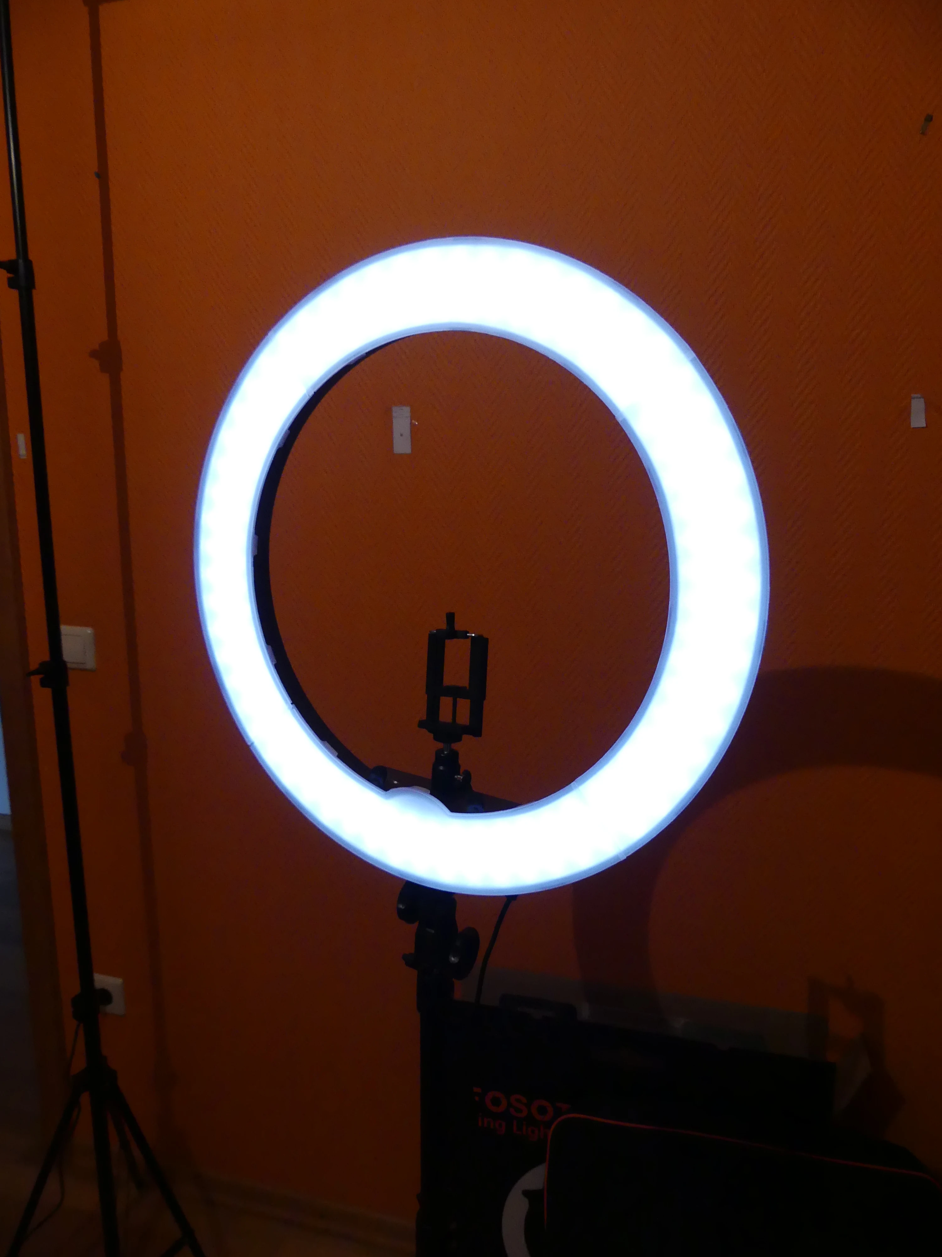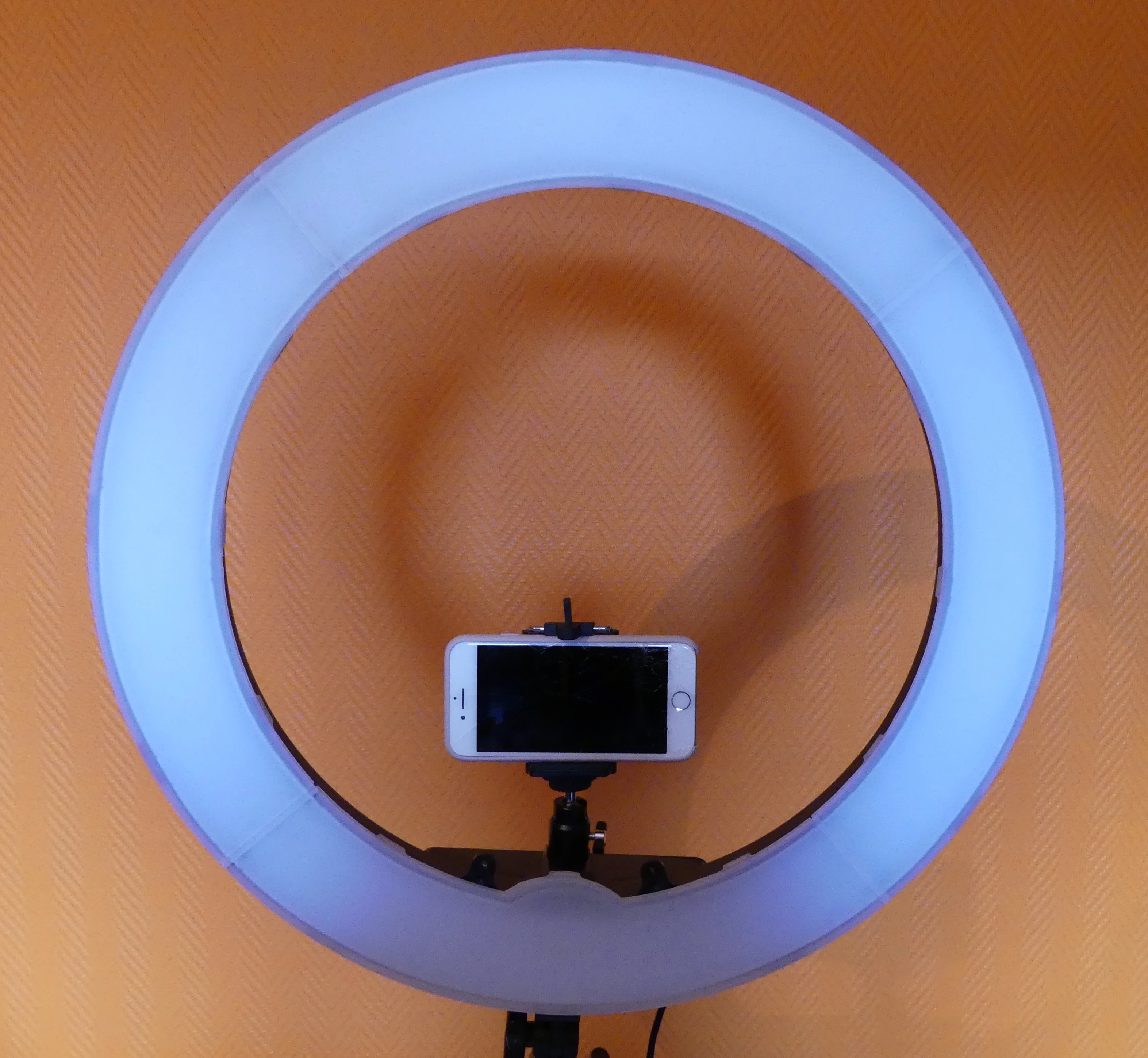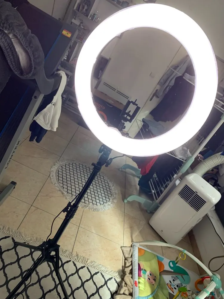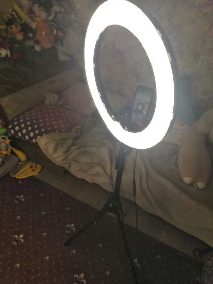 Я так доволен этим кольцом. Выглядит точно так, как указано в описании товара. Кольцо довольно большое, и свет может быть достаточно сильным, чтобы осветить комнату. Он также может быть затемнен в соответствии с вашими предпочтениями. Мне также нравится то, что вы можете разместить телефон вертикально или горизонтально посередине. До сих пор я рекомендую этот товар.