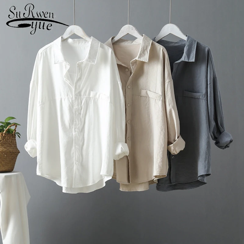Повседневные свободные женские рубашки, новинка весны 2019, модная женская блузка с длинным рукавом, белая рубашка на пуговицах, женские топы, уличная одежда 6800 50