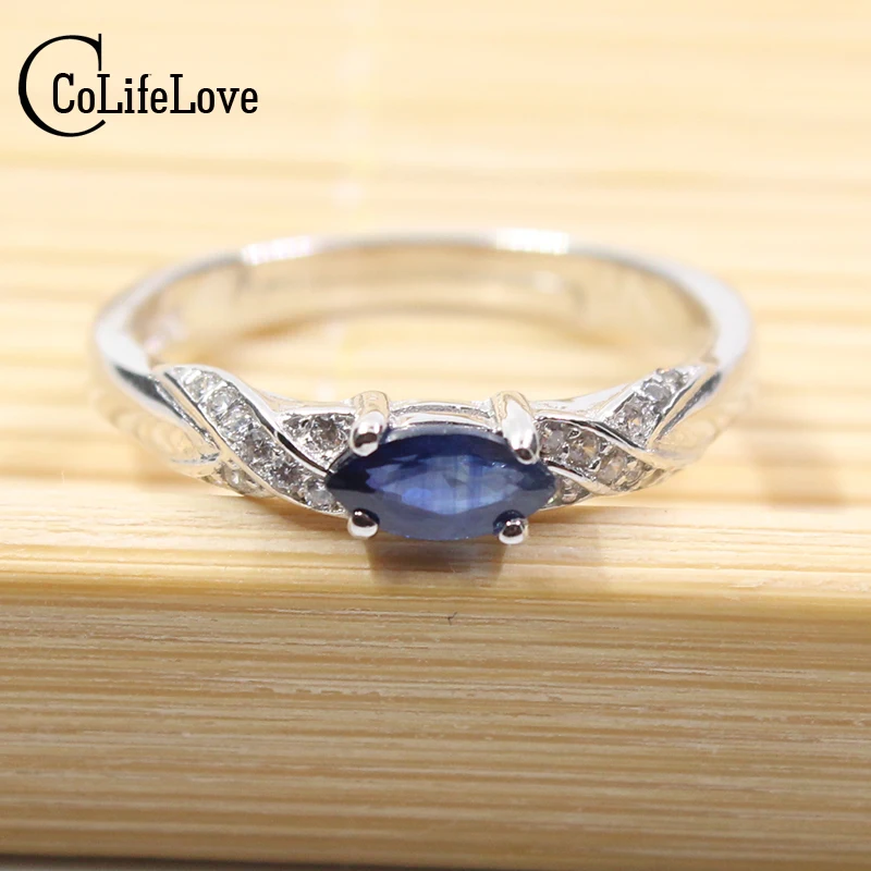 Горячая Распродажа, кольцо с натуральным сапфиром 3*6 мм, искусственный Сапфир, модель 925 от китайского сапфирового шахта