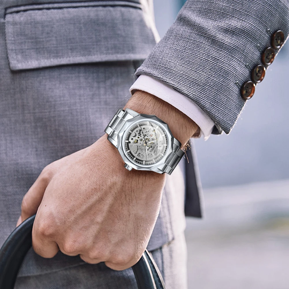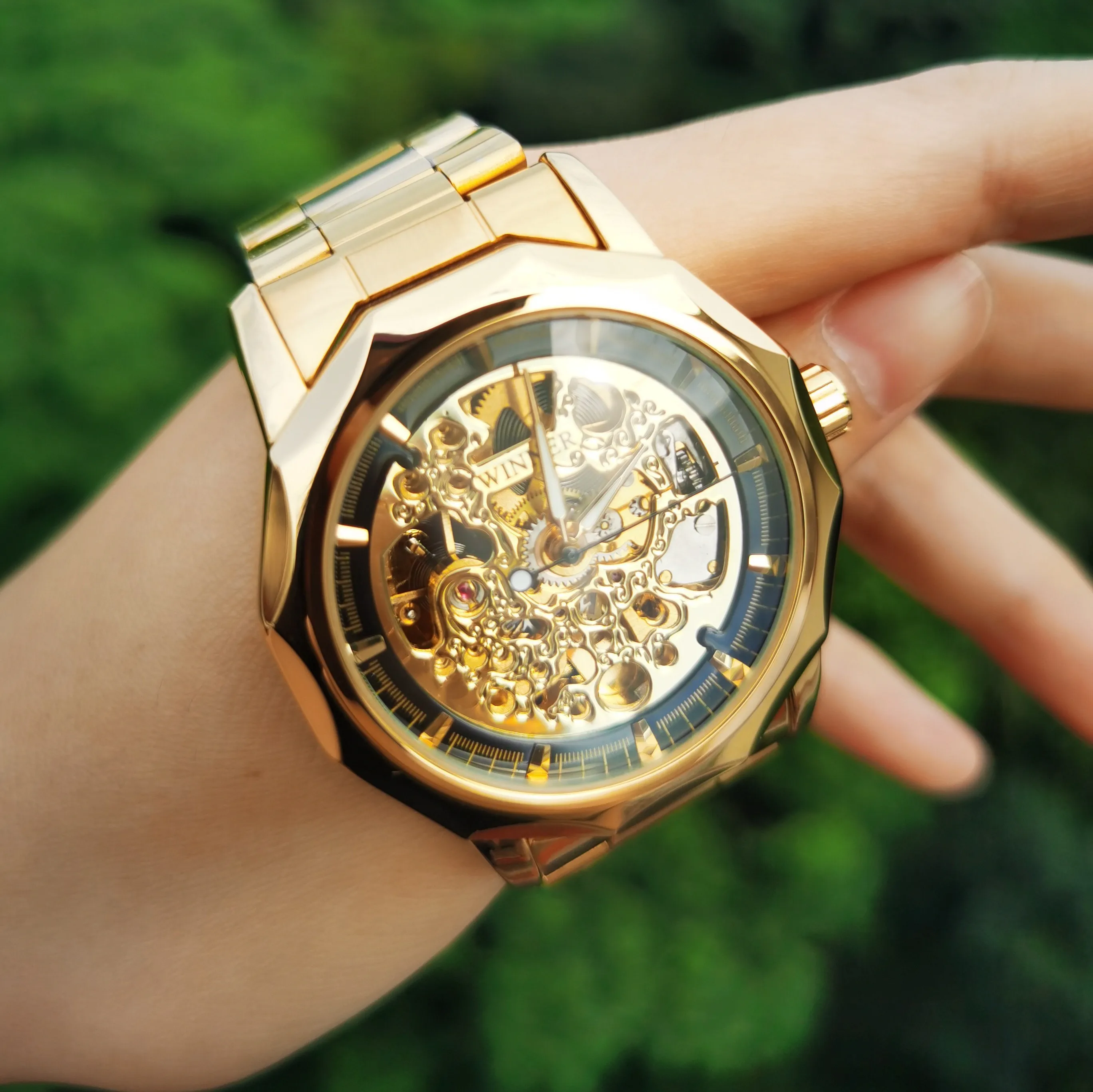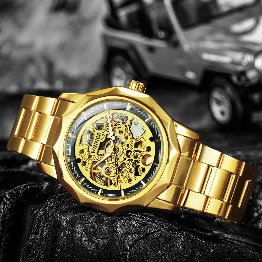 Золотые часы Скелетон мужские механические часы s, топовые брендовые Роскошные автоматические наручные часы со стальным ремешком, повседневные часы высокого качества 2021