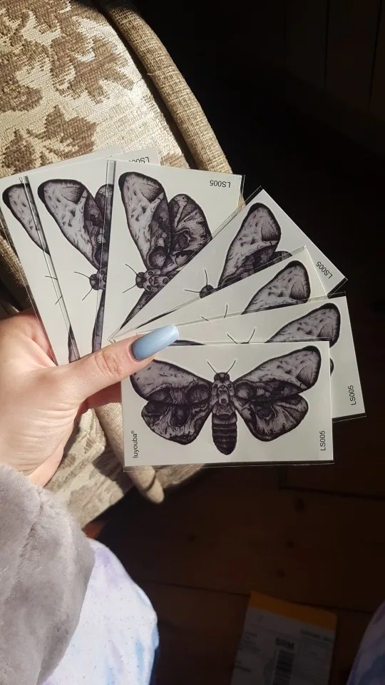 Чудесный мотылёк! Я заказывала сразу 5 шт, пока использовала 1. Рисунок чёткий, перенёсся без проблем. Держится не долго, я сделала утром, а ночью часть его крылышка частично стёрлась и мне пришлось смывать до конца. Это было не просто, я терла тряпочкой, намоченой в горячей воде. Остались чёрные точечки и капиляры, пораненые трением. А в остальном всё замечательно, рекомендую!