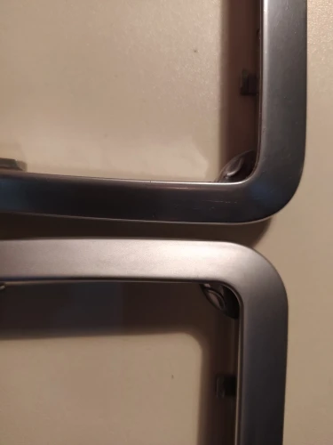 Посылка пришла очень быстро. Заказывал ради рамки, на моей вздулся хром после попадания жидкости из ароматизатора. Качество рамки и чехла отличается от оригинала. Цвет немного не такой и размер на 2мм меньше чем у оригинальной, качество чехла на 4 с минусом. Мой вывод, за такие деньги довольно неплохой вариант, но для себя буду восстанавливать хром у оригинальной рамки. На фото слева оригинал.
