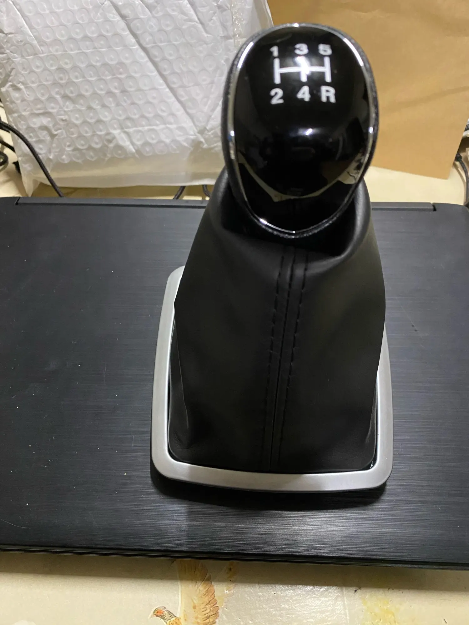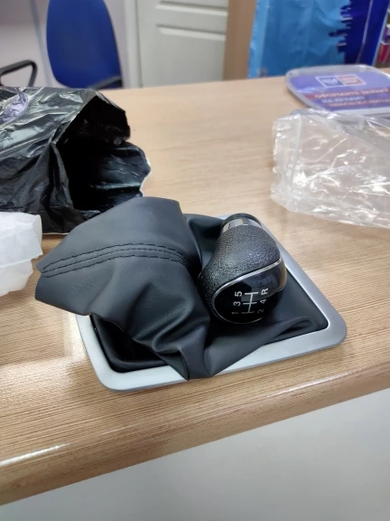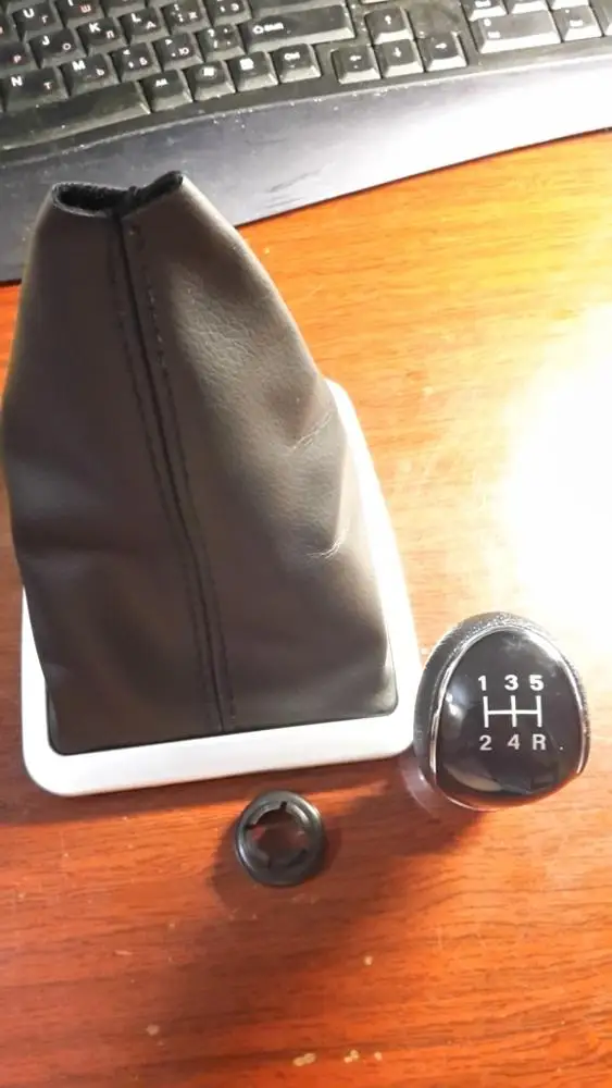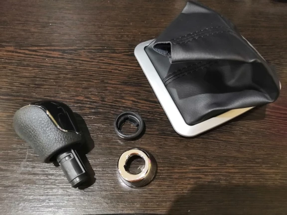 Рычаг и чехол пришли не соединёнными. Отличия от оригинала (кроме цены, оригинал стоит в шесть раз дороже): 1. Оригинальный чехол пошит из одного куска кожзама, тогда как этот - из двух. В принципе, это не показалось мне важным. 2. Оригинальная рамка - блестящая, туго заходит в место установки и хорошо держится там, тогда как эта -матовая, при этом на месте сидит ненадёжно и очень легко выдирается оттуда. Важный аспект, я поменял на оригинальную рамку. 3. Оригинальный набалдашник оклеен куском искусственной кожи спереди, тогда как этот спереди пластмассовый, с рифлением. В целом - несущественно. В целом, считаю, что можно было купить только набалдашник, а чехол аккуратно разобрать и сшить новый.
