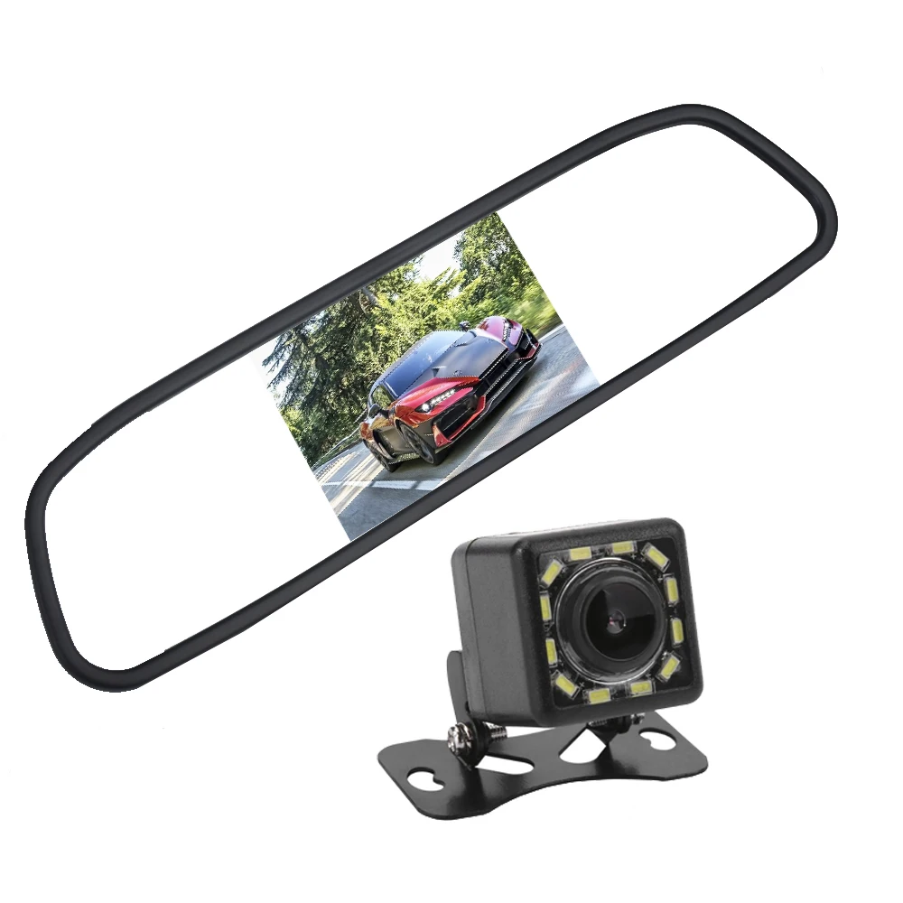 Цветное Автомобильное зеркало заднего вида с TFT ЖК-дисплеем 4,3 дюйма, 4,3 дюйма, видеоплеер с DVD-плеером, автомобильное аудио для автомобильной камеры заднего вида