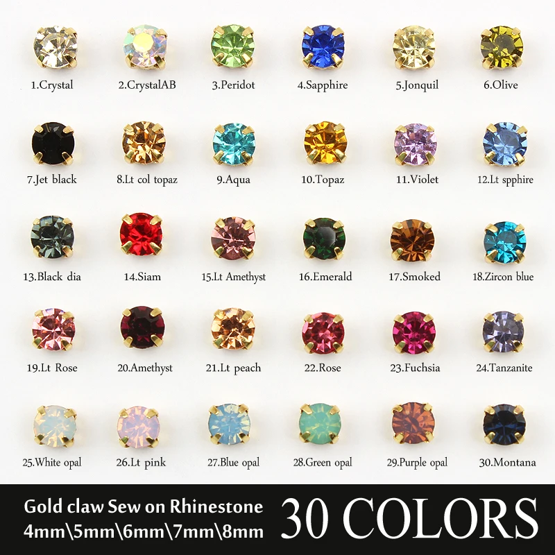 Горячие продажи 30 цветов пришить Стразы Золотой Коготь 4 мм-8 мм Кристалл Стразы использовать для DIY аксессуары Бесплатная доставка