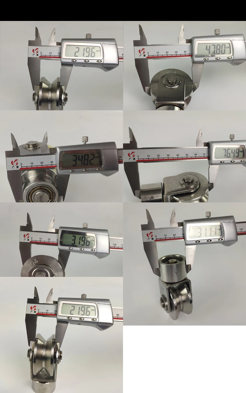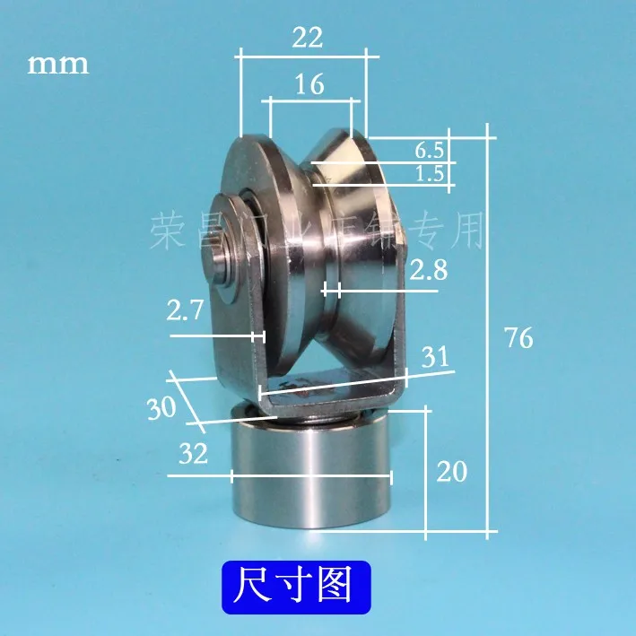 2. Основной Размер: диаметр колес 48 мм, толщина 22 мм; Ширина V-паза 16 мм, глубина паза 8 мм; Основной корпус имеет подшипники 2шт 6000RS; Верхний торцевой имеет подшипник 1шт 6000RS; толщина кронштейна 2,7 мм.