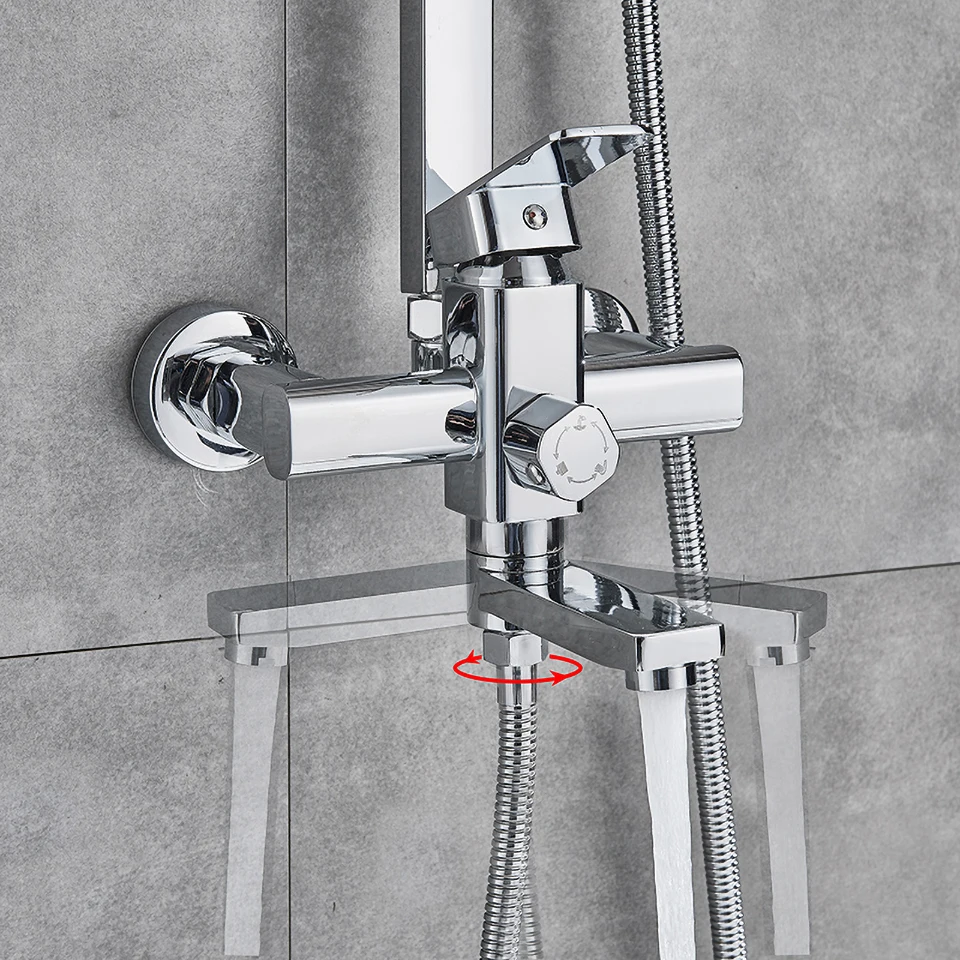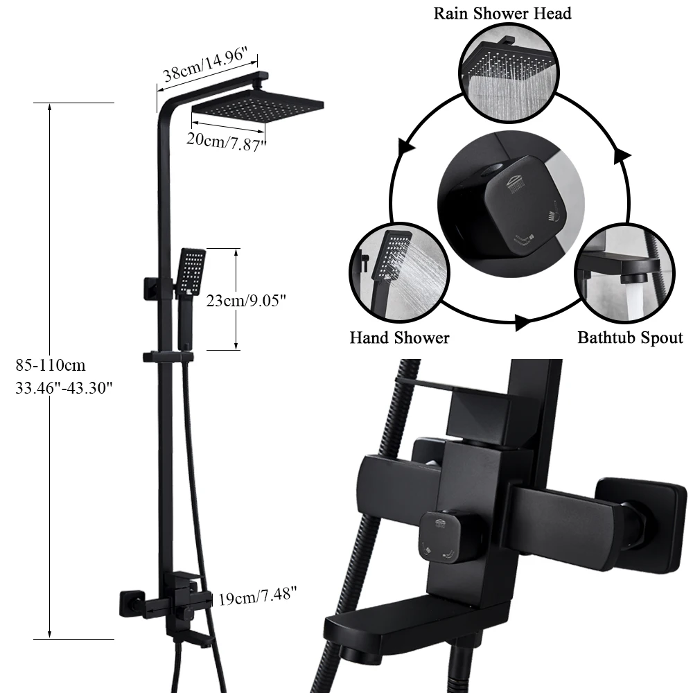Uythner ванная комната хромчерный смеситель для душа вращается Ванна Носик настенное крепление 8 "осадков Душевая Головка с ручной душевой ванной смеситель