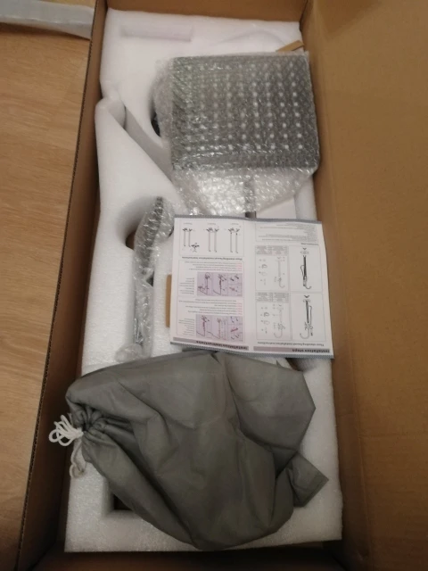 Коротковата штанга для душа, я помещаюсь под ним с ростом 170, а вот кто чуть выше уже не сможет им пользоваться при стандартном расположении смесителя над ванной. Не хватает одного болтика. И доставка конечно подкачала. Заказывала отправление из России, шло из Москвы до Волгограда три недели, не отслеживался. Продавец ничего внятного о сроках доставки не отвечал.