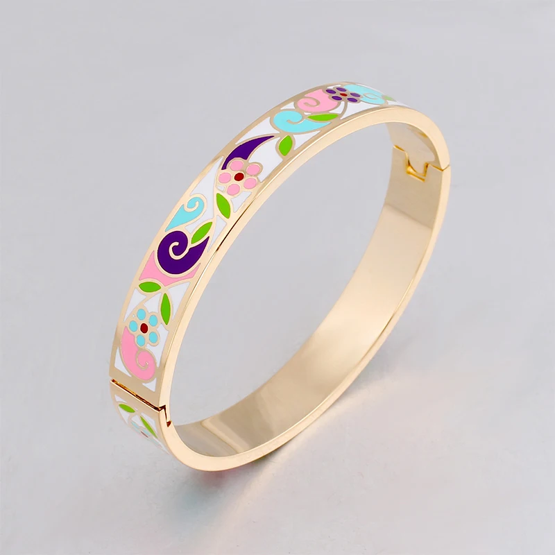 10 мм перо Дизайн Шаблон открытие браслет для женщин нержавеющая сталь Эмаль Браслеты этнические ювелирные изделия