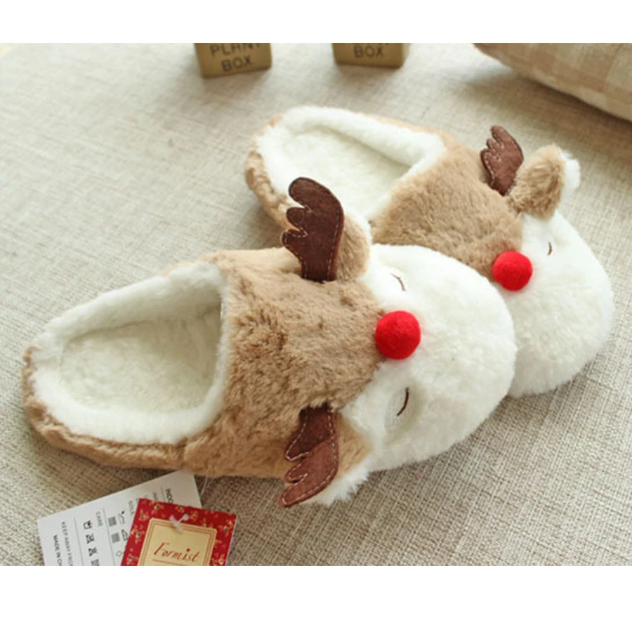 Женские домашние тапочки с оленем; Домашние тапочки из хлопка; Обувь с плюшевой подкладкой; Мужская обувь в мультяшном стиле