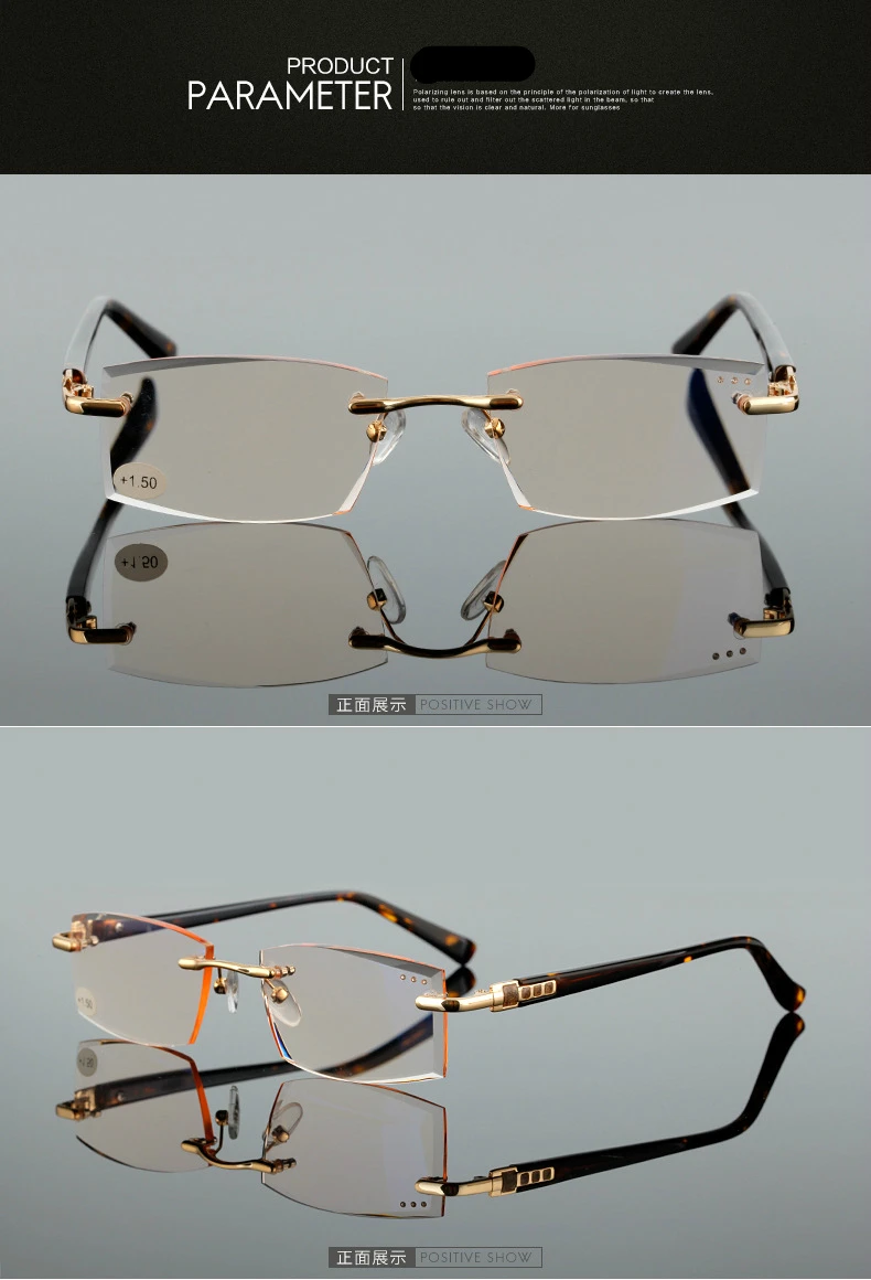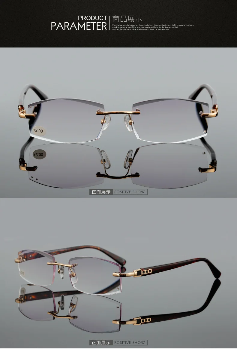 Rimless алмазные резка градиент затемненные очки для чтения светиль...