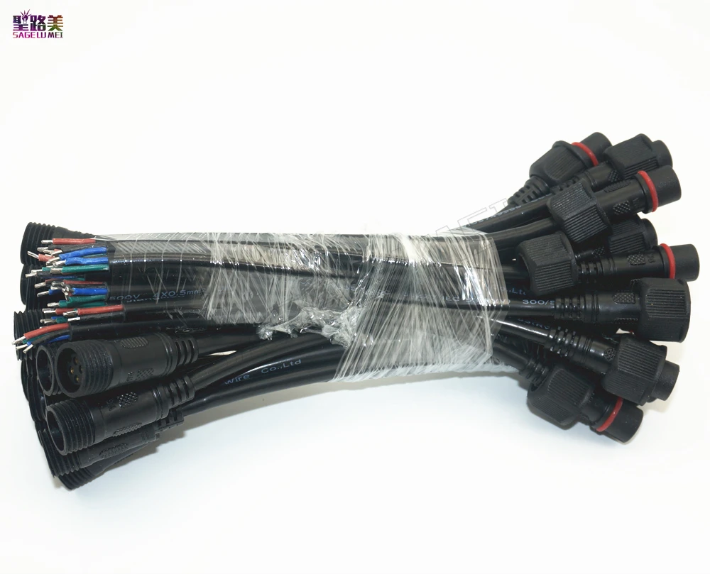 5 пар, 4 ядра, 4-контактный Водонепроницаемый pigtail; Штекер-гнездо, длиной 20 см; Диаметр соединителя: 13,5 мм, IP68, светодиодный разъем