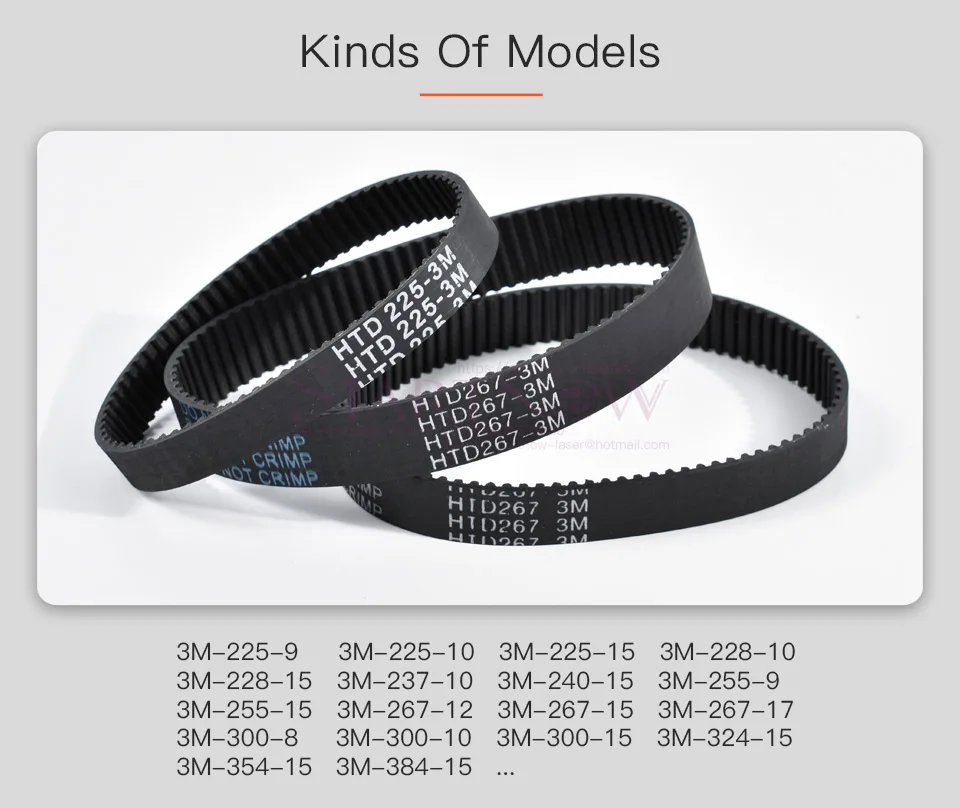 Ремень ГРМ HTD 3M-255-15, периметр 225, 267, 300, 324, 384, 519 мм, индивидуальная ширина 8, 9, 10, 15, 17 мм
