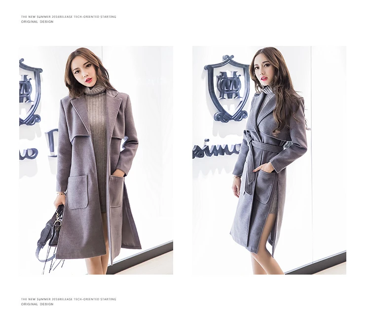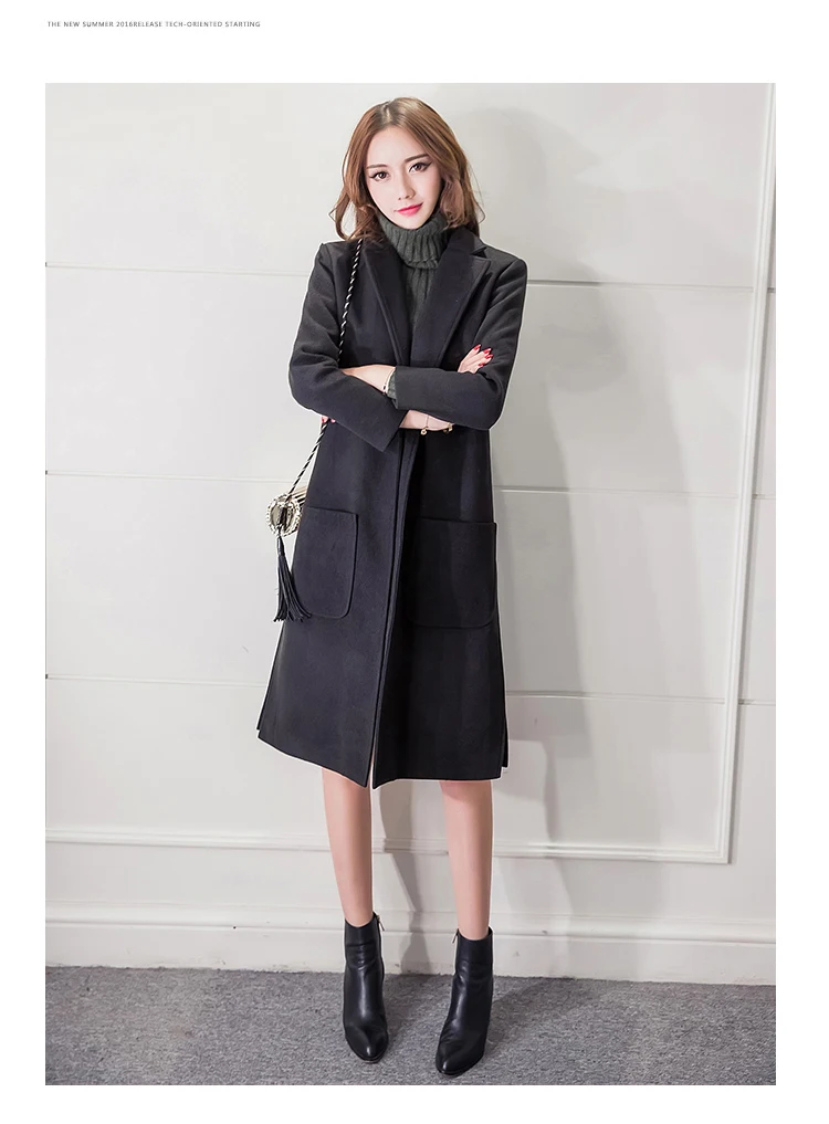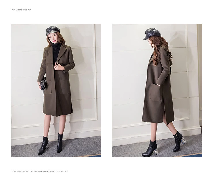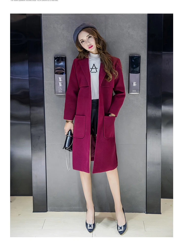 Пальто шерстяное женское, однотонное, с длинным рукавом, много цветов