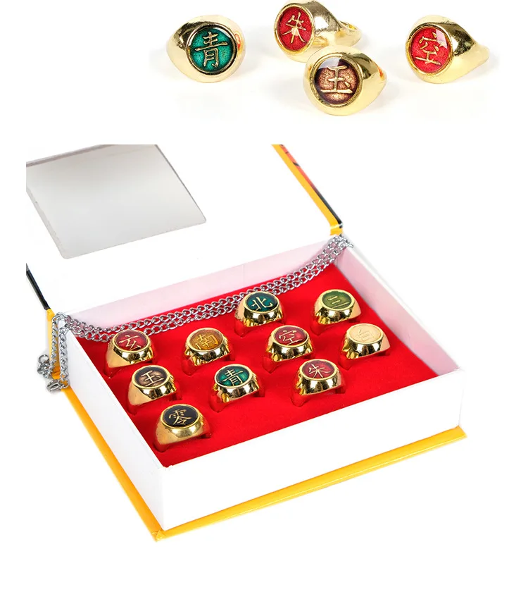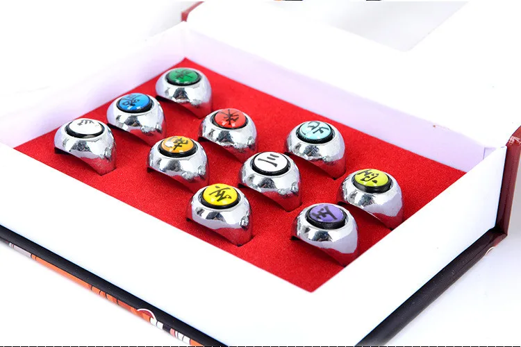 10 шт.партия японское аниме ПВХ фигурку кольца Косплей-костюм Akatsuki члена учи ха Итак Привет боль Кольцо Кулон игрушки подарок новинка