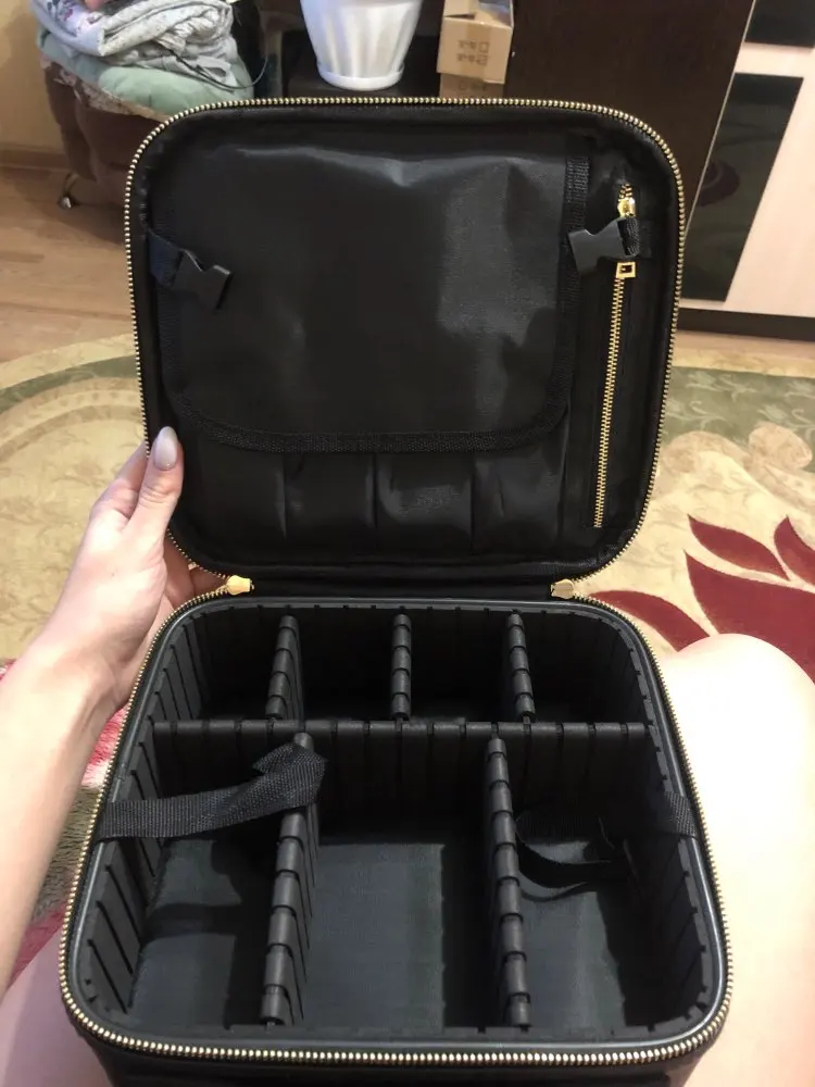 Товар мне понравился,вместилось почти всё,но фен не вошёл,буду носить в пакете(и то ладно)!Выбрала самый большой размер,но перегородки по другому не переставить(буду менять фен -на поменьше)Продавец честный ,пришло быстро,всё в целости -рекомендую к покупке!!!
