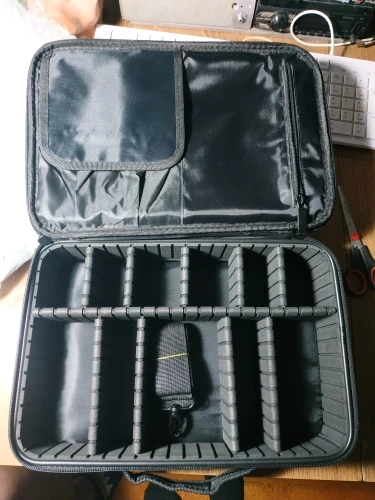 Несмотря на трудности с выбором размера чехла из-за небольшого размера изображения, товар действительно выглядит очень хорошим качеством, отсек для кистей достаточно большой с пластиковым клапаном для защиты остальных элементов, Отсеки снимаются, а на внешней стороне есть съемные ремешки, которые можно носить с собой на спине.
