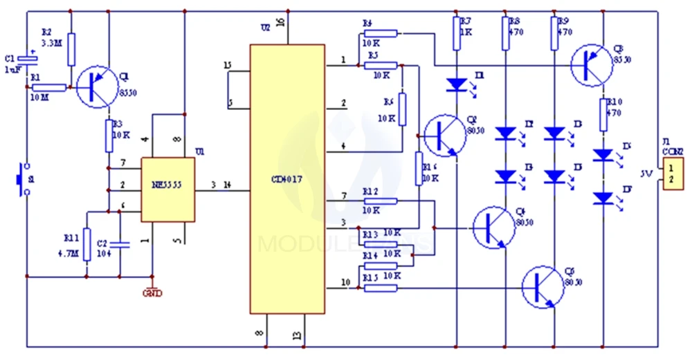Электронные кубики NE555 светодиодный модуль CD4017 Комплект сделай сам 5 мм красный светодиодный 4,5-5 в ICSK057A электронный модуль сделай сам