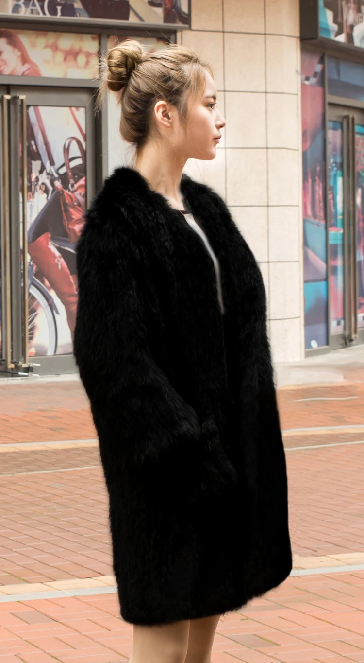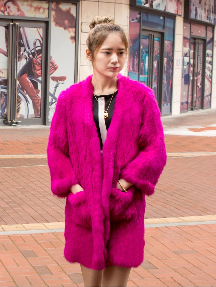 Лидер продаж, новинка, пальто из натурального кроличьего меха, модная женская вязаная куртка из натурального кроличьего меха, зимняя теплая верхняя одежда из натурального кроличьего меха