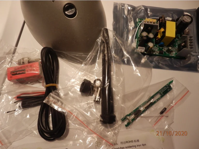 Полученный комплект полностью соответствует описанию, получен через 12 дней после заказа. Запасной датчик прилагается. Отличный паяльная станция, качественные комплектующие, собирается легко. Планирую еще заказать дополнительные жала.