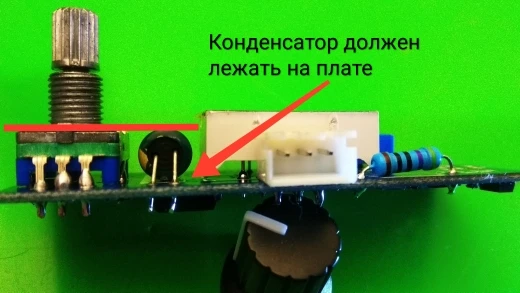 Важные замечания перед сборкой и первым включением.1)Убедитесь,что конденсатор 680mk ×10V на плате микроконтроллера ЛЕЖИТ на плате, а не приподнят над ней. Иначе при закручивании гайки энкодера он будет упираться в переднюю панель и плата изогнётся коромыслом.2)Проверьте,нет ли замыкания клеммы -24V (" земля",GND) на корпус жала в плате ручки паяльника. Если есть ,то нагрейте эту клемму и отведите её чуть вверх.3)На плате микроконтроллера аккуратно пропаяйте ещё раз все НЕ smd р/детали( индикатор,энкодер,подстрочник и т.д). Тщательно протрите всю плату спиртом и уберите остатки флюса.4)Перед пайкой датчика движения,вставьте его в плату и ПЛАВНЫМИ движениями платы вверх/вниз на слух убедитесь,что шарик внутри датчика перемещается свободно , без залипания.Выберите лучший из двух.5)Вставьте жало в посадочную плату и убедитесь,что все клеммы очень плотно прижимаются к контактам на жале. Лучше зачистить клеммы и контакты жала наждачкой нулёвкой.6)Замените предохранитель 10А на 1А.