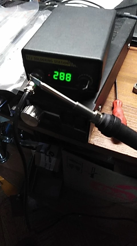Сборка заняла около часа времени. Ничего сложного. Циферблат видно хорошо. Корпус качественный и по толщине и на ощупь. Как собирать, смотрите ОПИСАНИЕ там все крайне понятно. Остались детали: вибродатчик (видимо второй в подарок) , коннектор с тремя проводами, термоусадка, канифоль и припой, было в комплекте. Пользовался своим 559 флюсом, канифоль в комплекте хреновая, плохо лудит. Включил, все сразу заработало, но заметил небольшие скачки температуры, плюс-минус 3 градуса. Где-то читал, что земляной провод нужно куда-то припаять, забыл куда! Будем посмотреть) Был глюк, когда вытащил жало посмотреть. Включил и на экране цифра 500 и ни туда и ни сюда. Что сделал: выключил, открутил фикс. гайку на ручке и несколько раз "потрахал" жалом ручку, то бишь, просто поводил вверх-вниз. Включил и все заработало. Нагрев моментальный, очень порадовало. Припой растекается, а не скатывается. За пол минуты полностью выпаял все компоненты с платы зарядки мобильного. Советую для покупки однозначно!!!