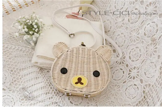 Новый высокое качество хорошее Новый Rilakkuma сумка легко супер очаровательны ротанга медведь плечо соломенная сумка