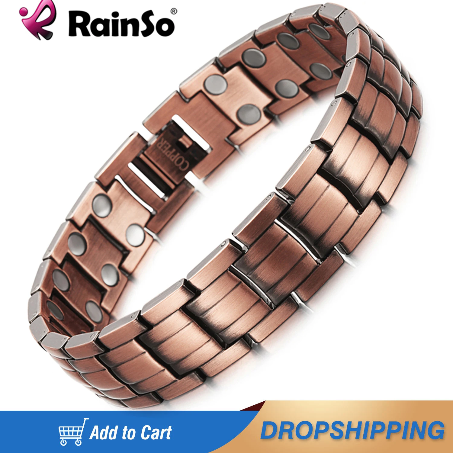 RainSo красный Медь Магнитный браслет для мужчин женщин 2 ряда магнит здоровый био энергии браслеты 2018 подарок на день отца