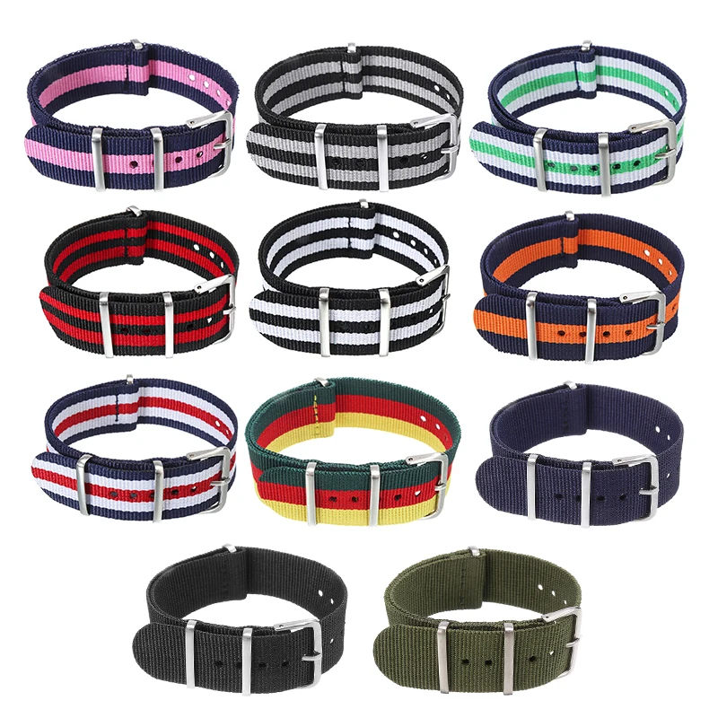 Ремешок для часов из нейлоновой ткани, с цветной пряжкой, 182022 мм
