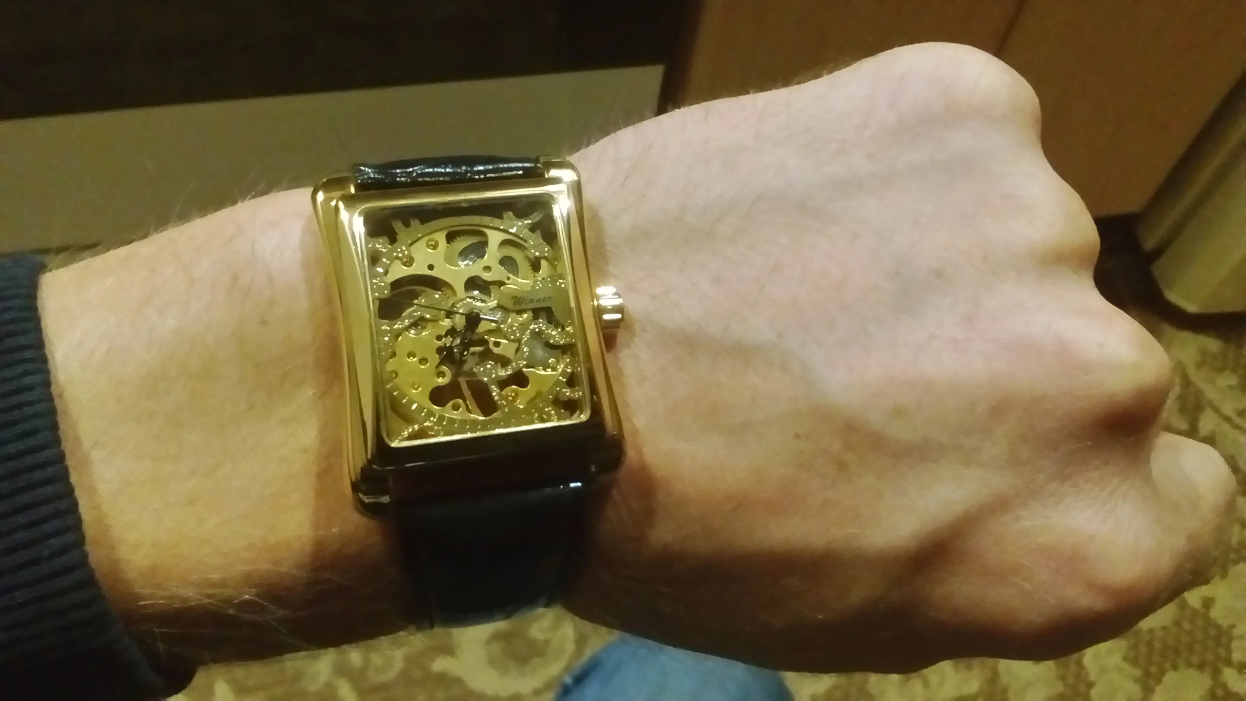 Победитель 2017 Ретро Случайные Серии Прямоугольник Циферблат Дизайн Золотой Узор Полые Часы Скелет Мужчины Часы Лучший Бренд Класса Люкс Механический