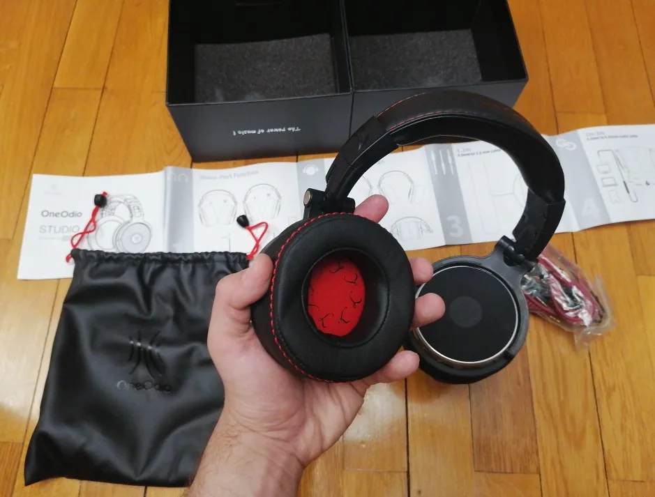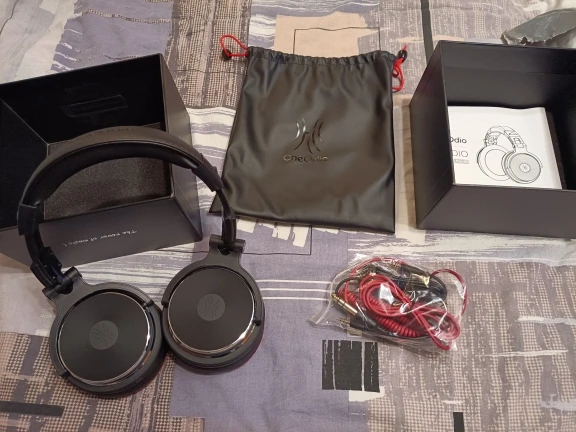 Вот и приехали мои новые наушники OneOdio Pro-50! Звук отличный, звукоизоляция средняя. Прекрасно ложатся на голову, имеют очень мягкие и приятные амбушюры. Мои уши полностью помещаются в амбушюры, наушники при этом не давят на голову и уши. Конструктивно пластиковые, при бережном обращении прослужат долго. Думаю, они больше подходят для домашнего использования и прогулок. По цене распродажи 11.11 + купон - Все отлично ))))) В комплекте: Сумка для переноски, длинный провод jack 6.3 на jack 3.5, специальный короткий телефонный провод с кнопкой и хорошим микрофоном. Можно воткнуть jack 6.3 в левый динамик, а jack 3.5 в правый динамик - отличная идея!