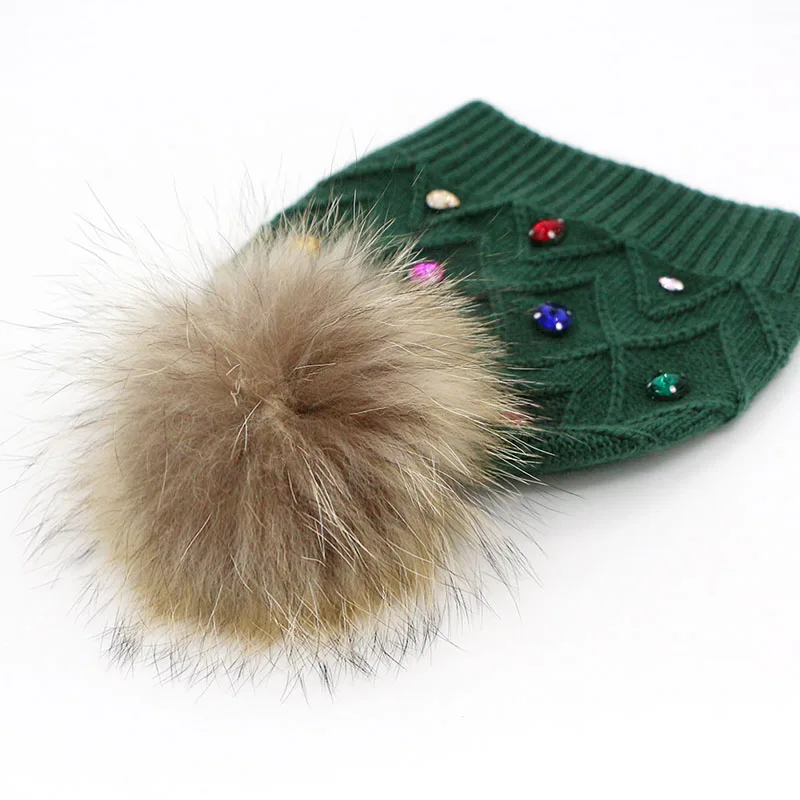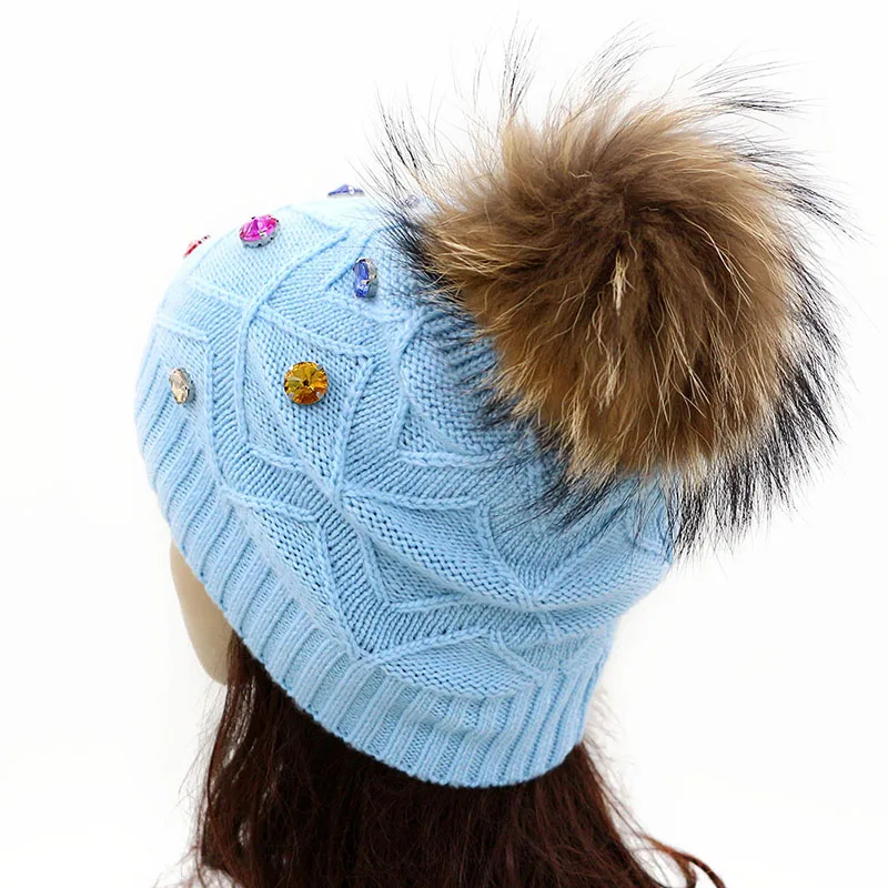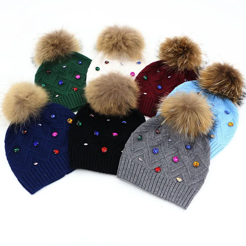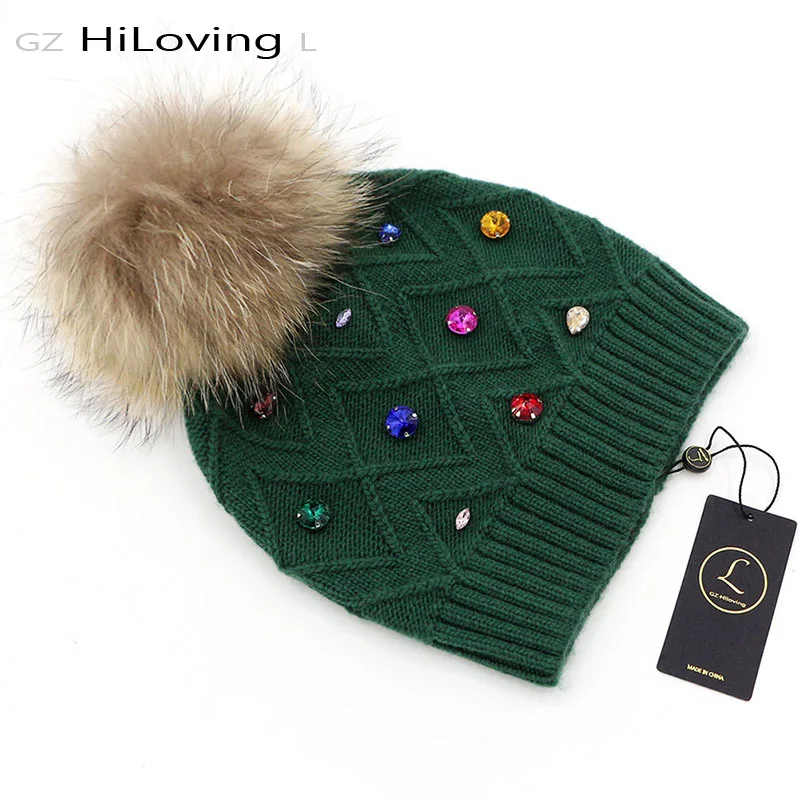 Женская Шапка-бини с меховым помпоном GZHilovingL, повседневная шерстяная шапка со стразами, для зимы