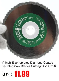 Режущее колесо покрыто бриллиантами с обеих сторон. Подходит для резки и шлифования стекла, мрамора, плитки или гранита.