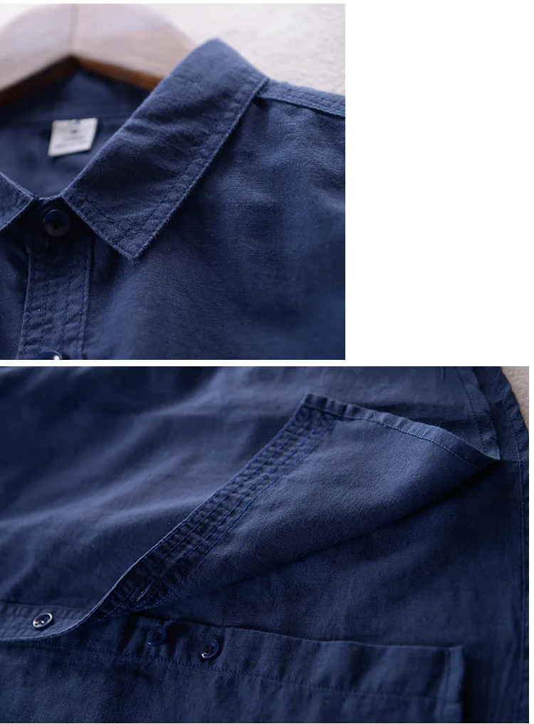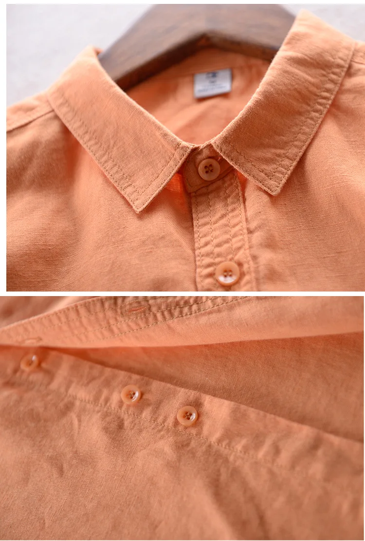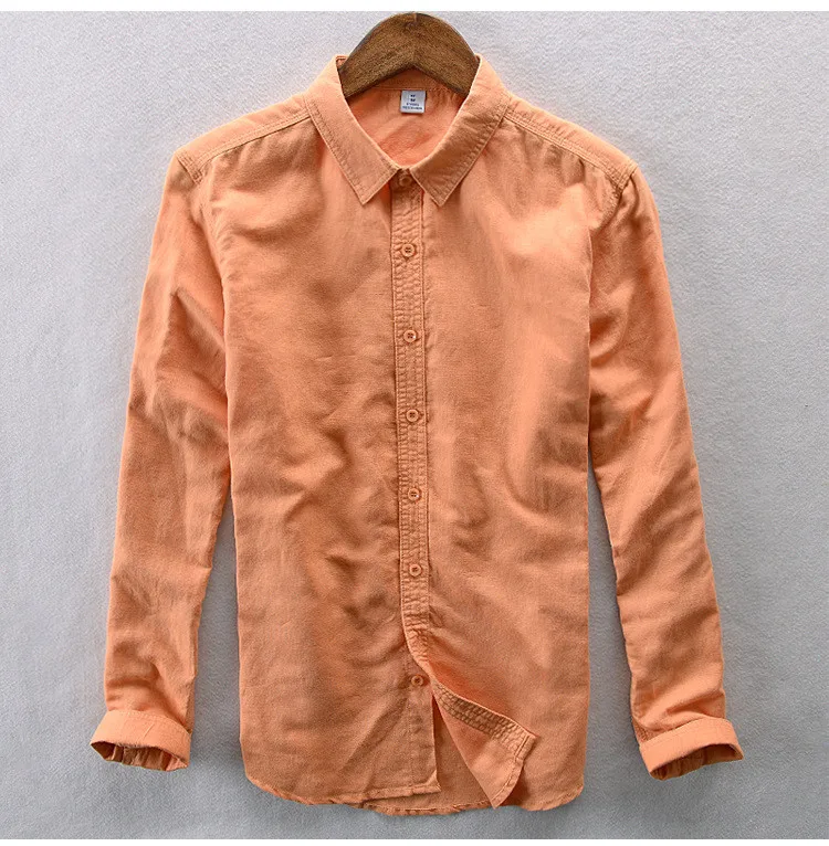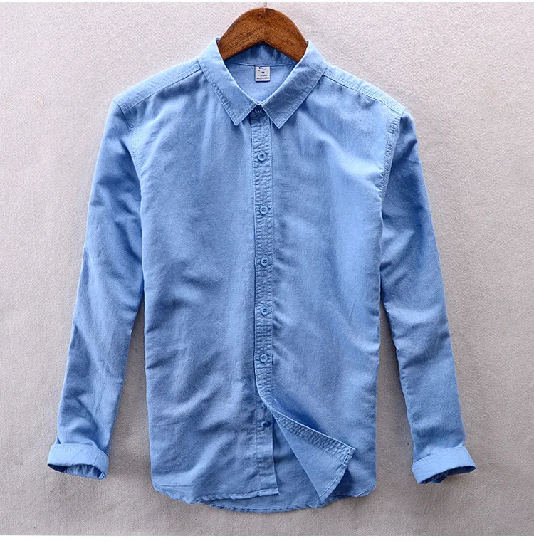 Мужская льняная рубашка с длинным рукавом, 8 цветов