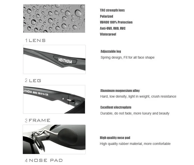 Название: Мужские поляризационные солнцезащитные очки VEITHDIA из алюминиево-магниевого сплава, зеркальные Мужские очки ночного видения, солнцезащитные очки, очки для мужчин 6502