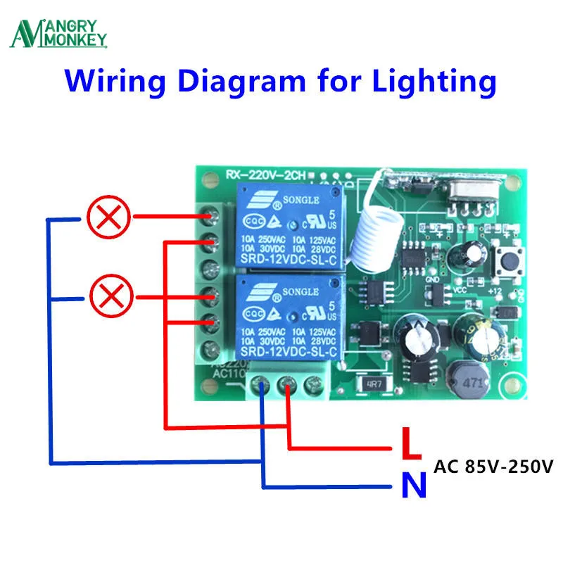 Универсальный пульт дистанционного управления, 433 МГц, 250 В, 110 В, 220 В, 85 В, 2 канала, радиочастотный, 433 МГц