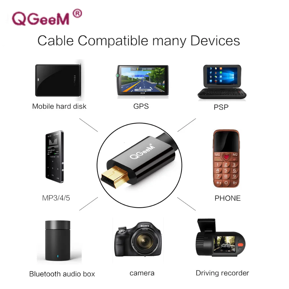 Кабель USBMini USB QGeeM, для зарядки и передачи данных, поддержка быстрой зарядки, для сотовых телефонов, MP3, MP4 проигрывателей, GPS, цифровой камеры, жесткого диска