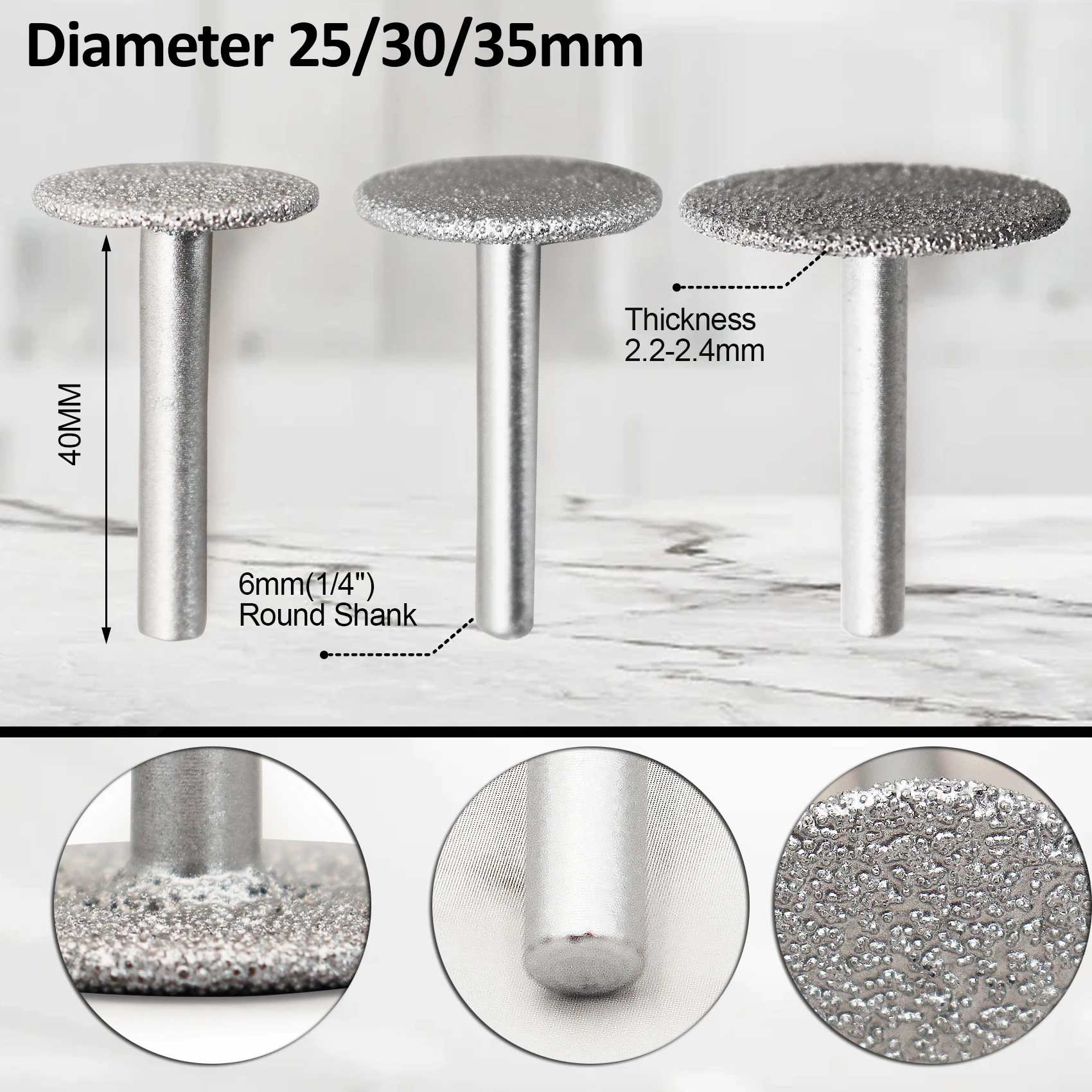 Алмазные режущие диски SHDIATOOL, комплект из 1 диска с хвостовиком 6 мм (25 мм + 30 мм + 35 мм) для резки, шлифования, гравировки