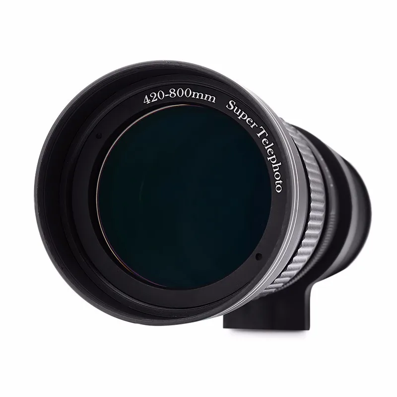 Этот телеобъектив 420 мм-800 мм f/8,3-16 предназначен для всех, кто снимает на расстоянии от объекта, в том числе для спортивной и фотосъемки дикой природы. Он легкий (550 г) и компактный (всего 29,8 см в длину), а ближайшее расстояние фокусировки-1,6 метра. Это объектив с ручной фокусировкой и корпус из алюминиевого сплава.