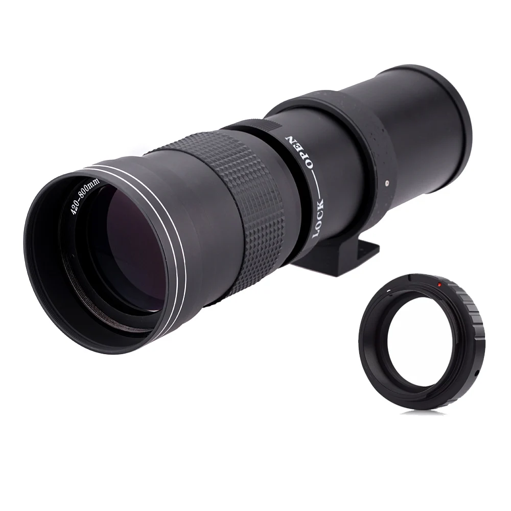 Этот телеобъектив 420 мм-800 мм f/8,3-16 предназначен для съемки на расстоянии от объекта, включая спортивную и дикую природу. Он отличается легким весом (550 г) и компактный (только 29,8 см в длину) и она ближе всего фокусное расстояние составляет 1,6 м. Это объектив ручной фокусировки и имеет корпус из алюминиевого сплава.