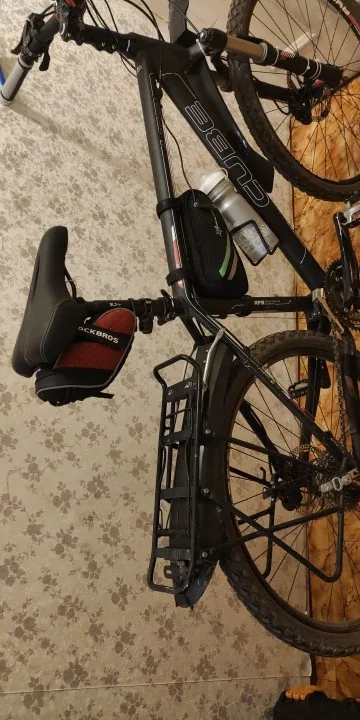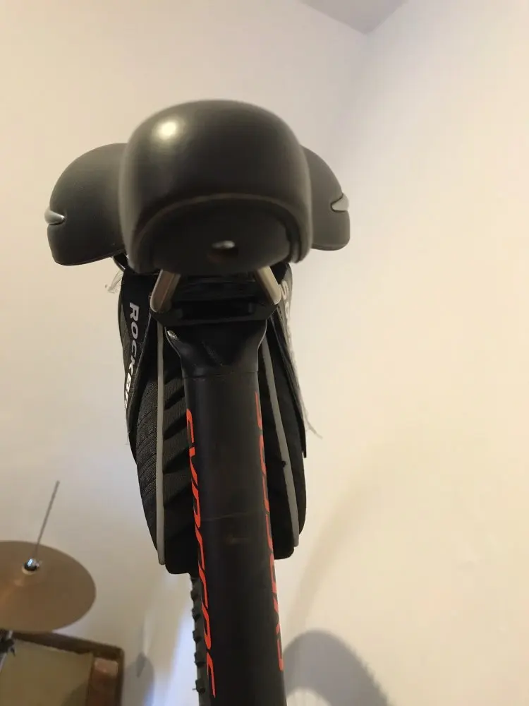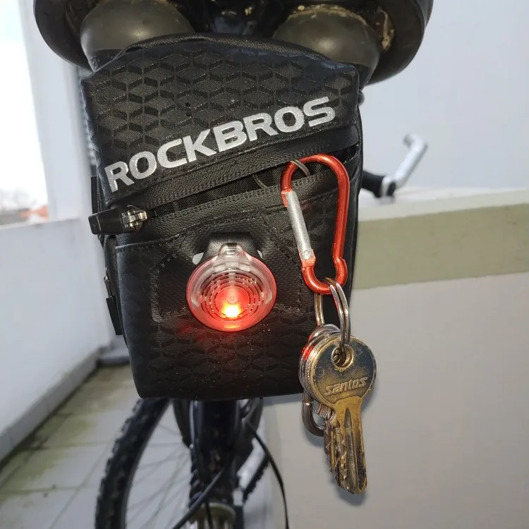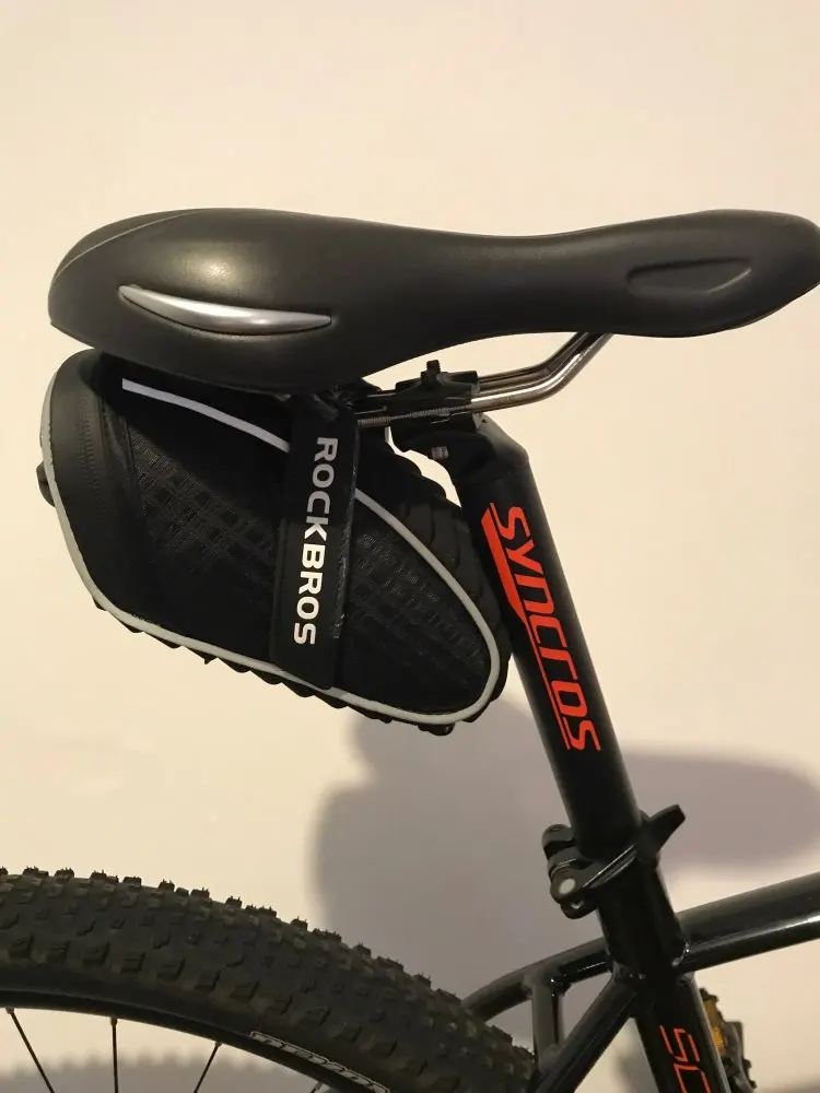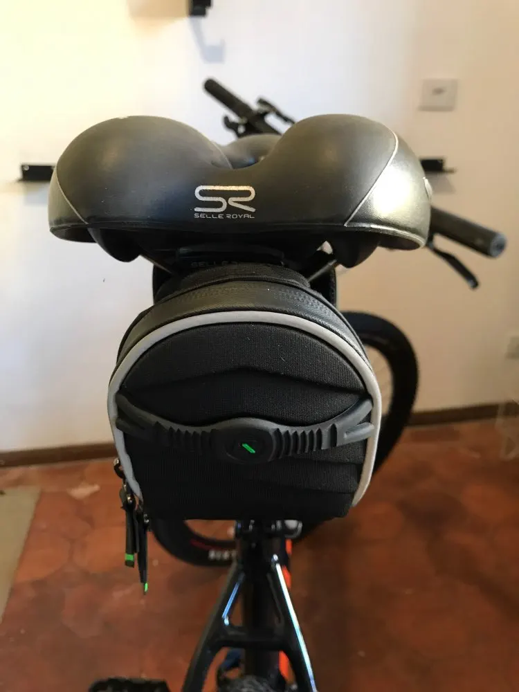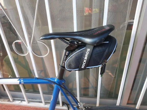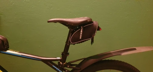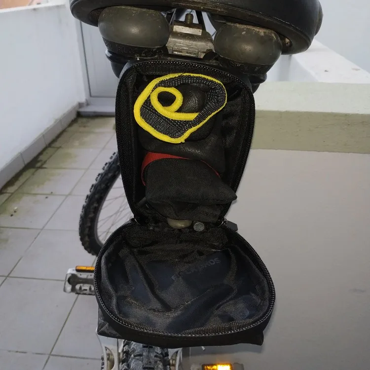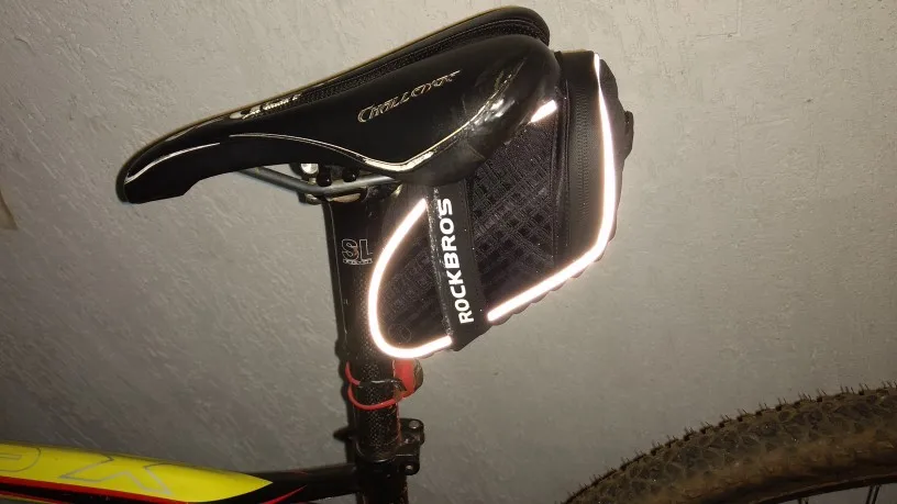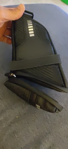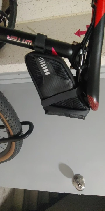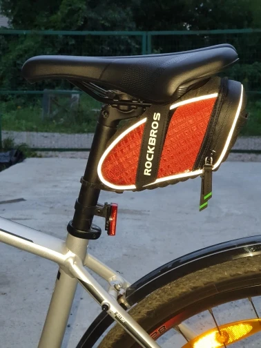 Если вы низкого роста, а значит подседельная труба также низкая, то он может мешать размещению заднего фонаря. На сумке закрепить что то 50 граммовое сложно, будет болтаться. Нижняя часть дополнительно крепится резинкой вокруг трубы, но мне пришлось применять и запасную резинку тоже. И в таком виде они слабо фиксируются, нужно будет выдумывать, как их связать. Если все таки натянуть только одну, то сумка сильно прижимается к седлу, и резинка может скоро порваться If you are short, which means the seat tube is also short, then it may interfere with the placement of the taillight. It is difficult to fix something 50 grams on the bag, it will dangle. The lower part is additionally attached with a rubber band around the pipe, but I had to use a spare rubber band too. And in this form, they are poorly fixed, you will need to figure out how to connect them. If you pull on only one, then the bag is strongly pressed against the saddle, and the elastic may soon be torn
