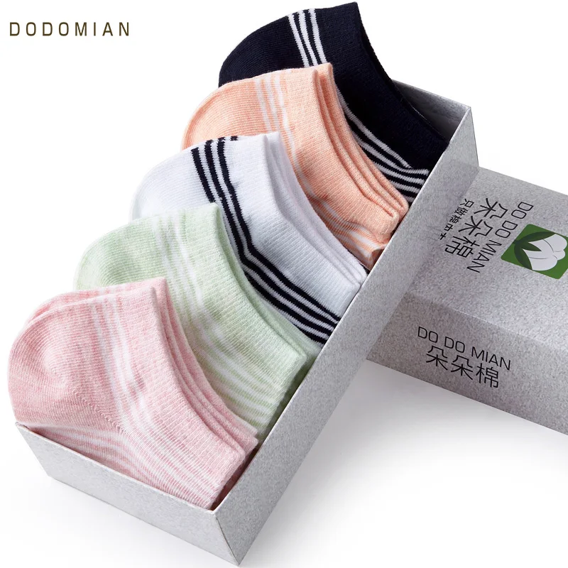 Женские тапочки полосатые хлопковые женские носки милые яркие короткие носки Забавные милые носки-тапочки брендовые качественные 5 параупак