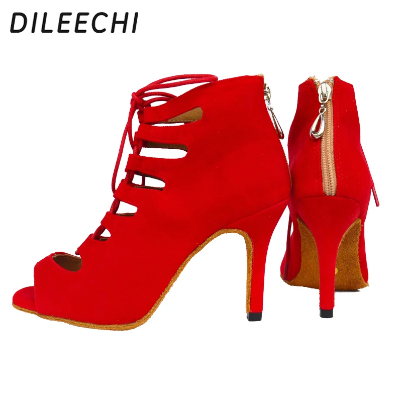 Туфли DILEECHI женские бархатные, Каблук 8,5 см, мягкая подошва, для латинских танцев, свадьбы, вечеринки, сальсы, черные, красные, синие