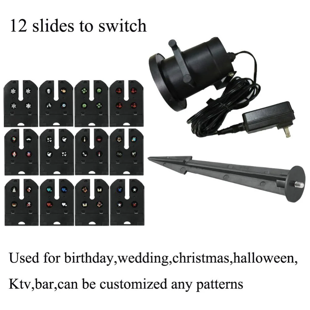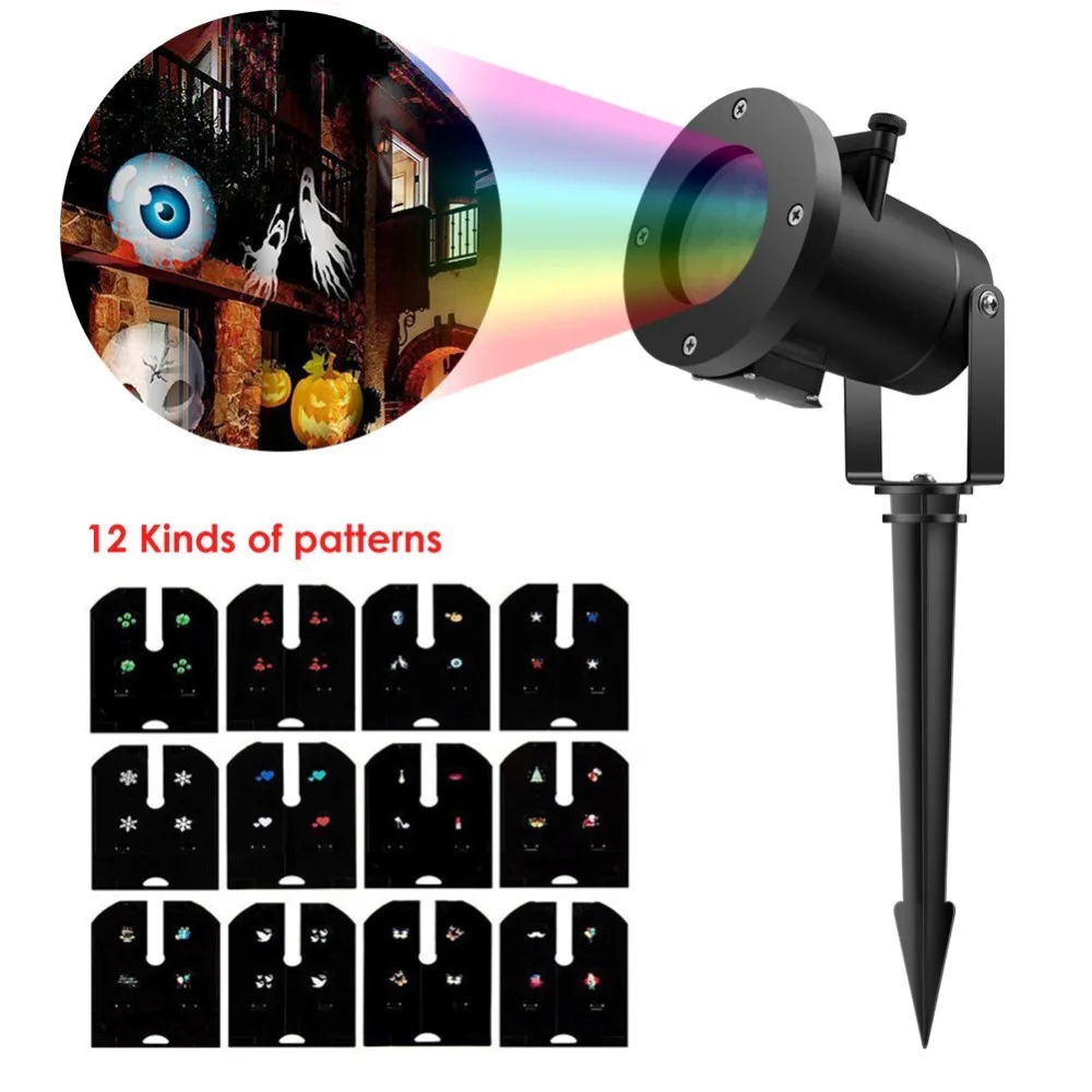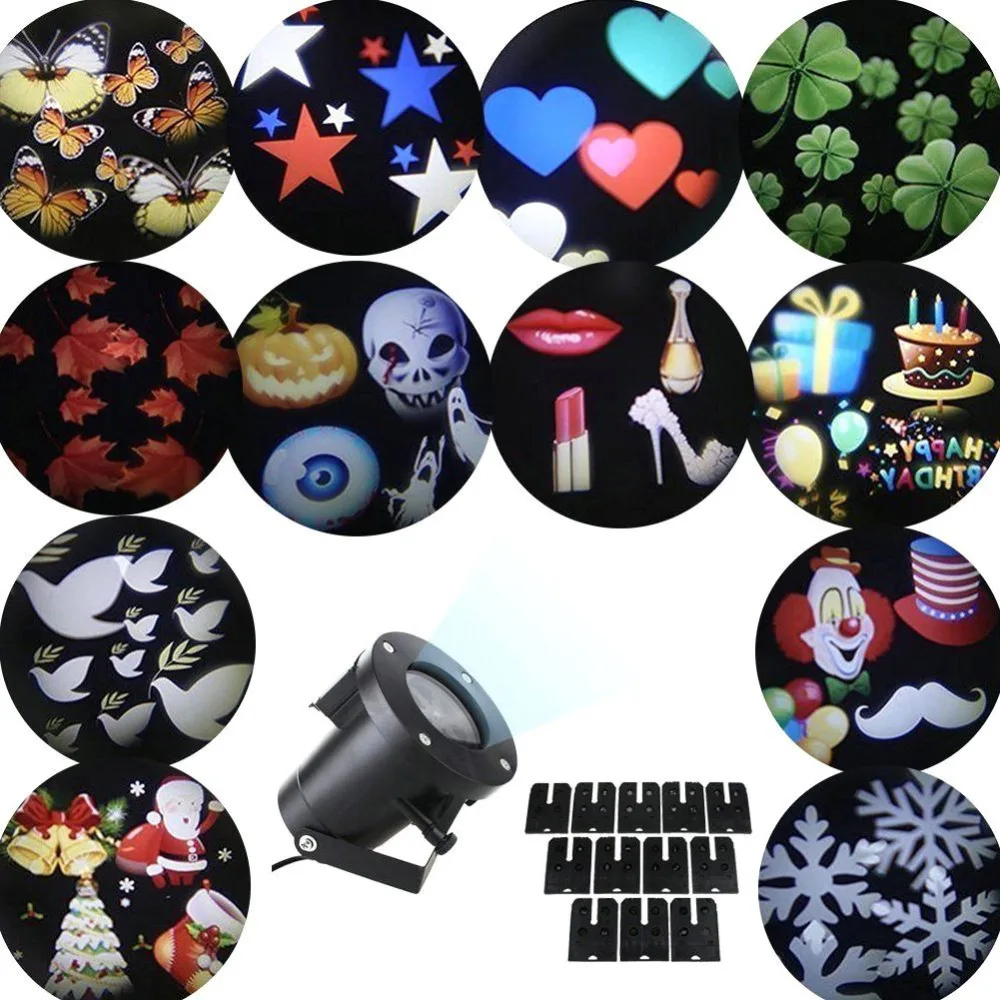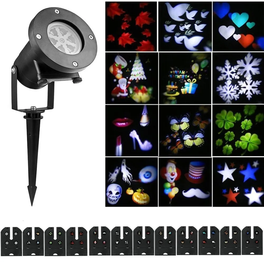 Лазерный проектор, 12 узоров, светодиодные водонепроницаемые снежинки, Новогоднее украшение для дома, вечеринки, сада, ландшафтных ламп