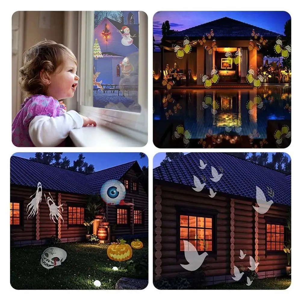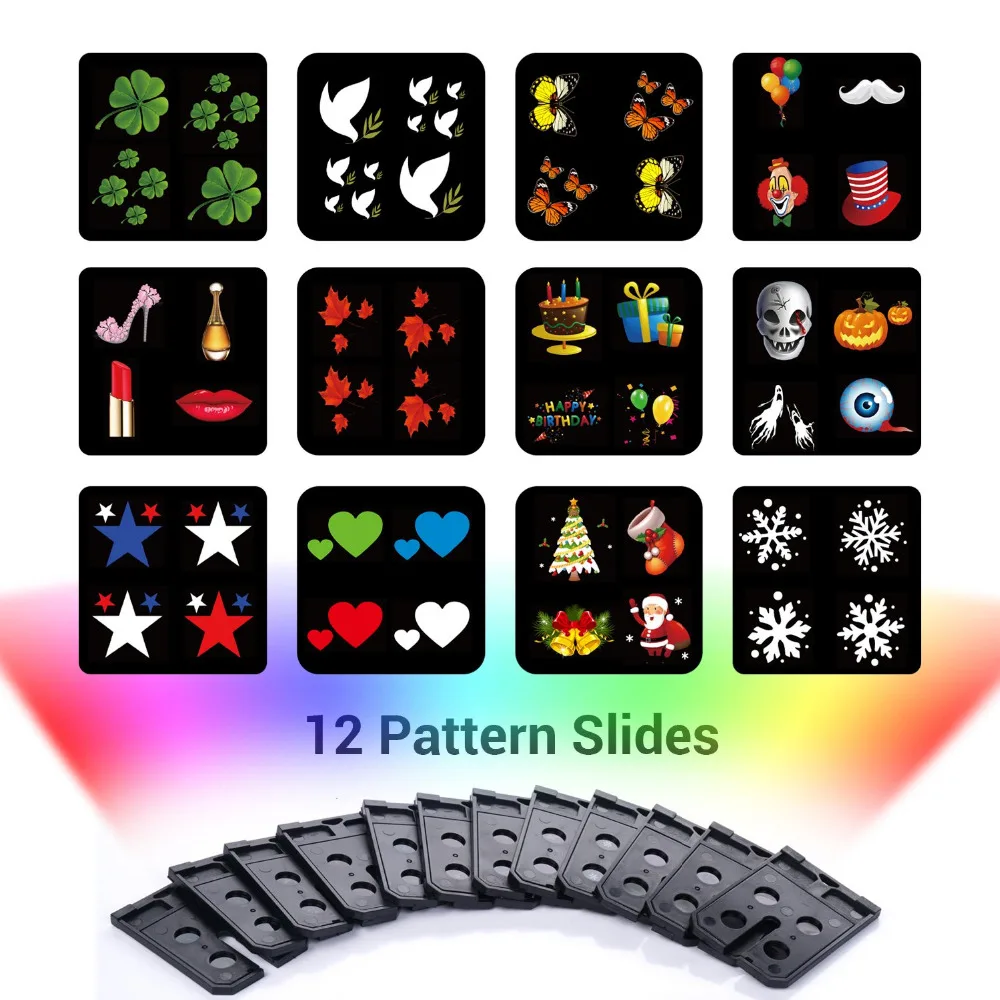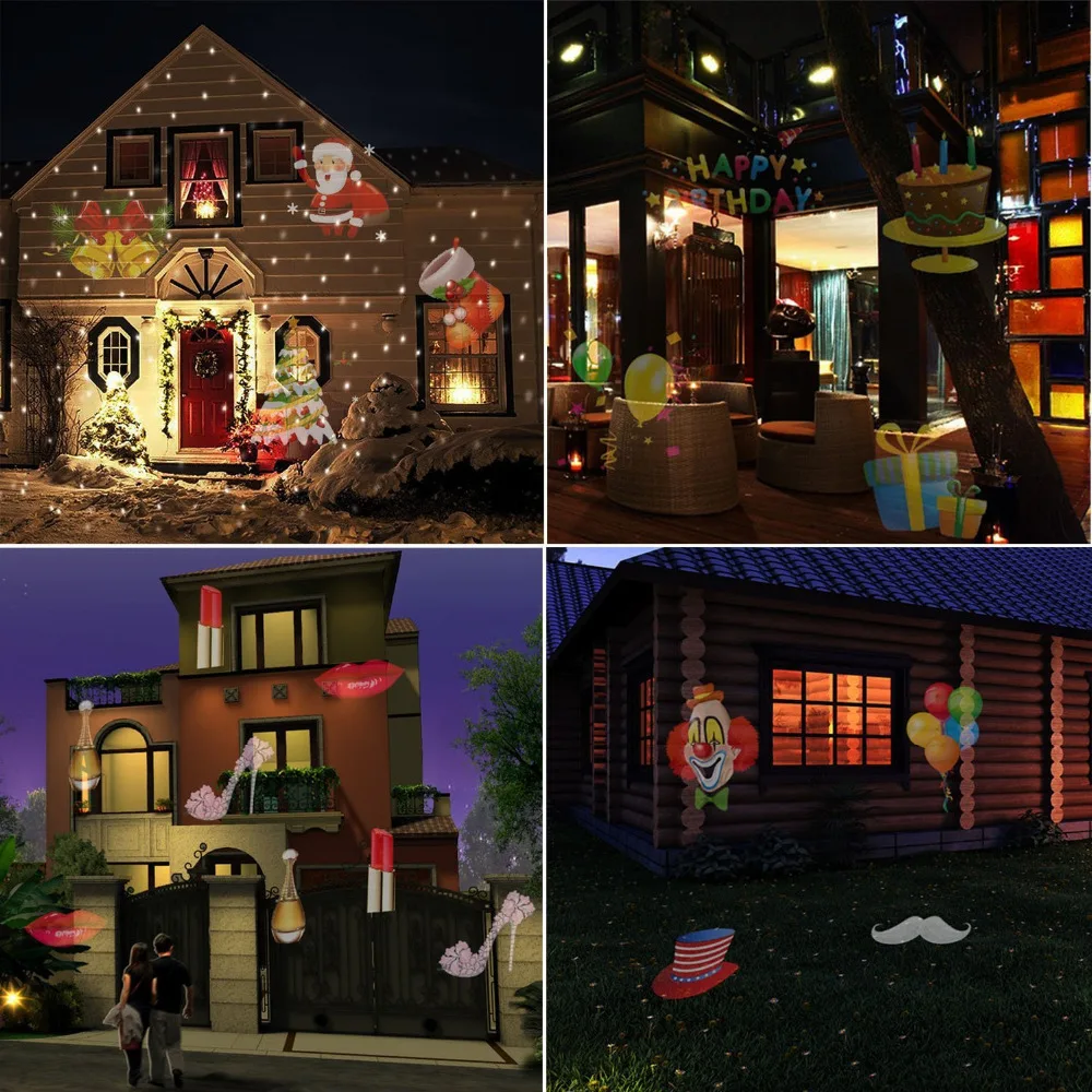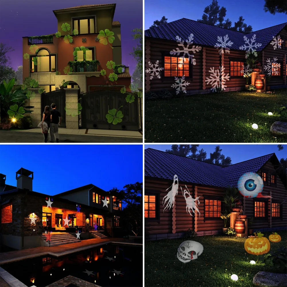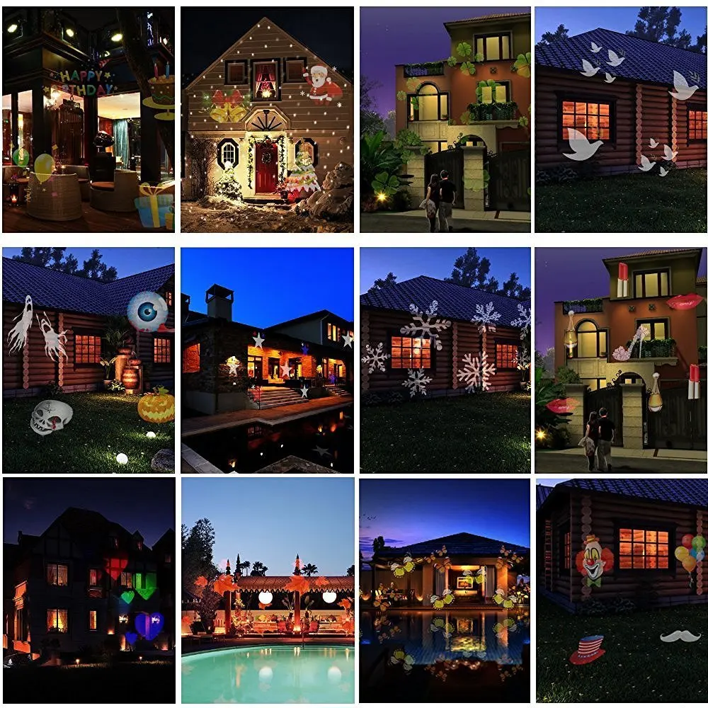 Лазерный проектор, 12 узоров, светодиодные водонепроницаемые снежинки, Новогоднее украшение для дома, вечеринки, сада, ландшафтных ламп