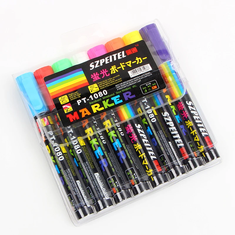 8 колецкоробка, стираемая наклонная ручка для разметки, 6 мм, жидкий мел, флуоресцентный неоновый 3d-маркер, светодиодный стеклянный щит для окон