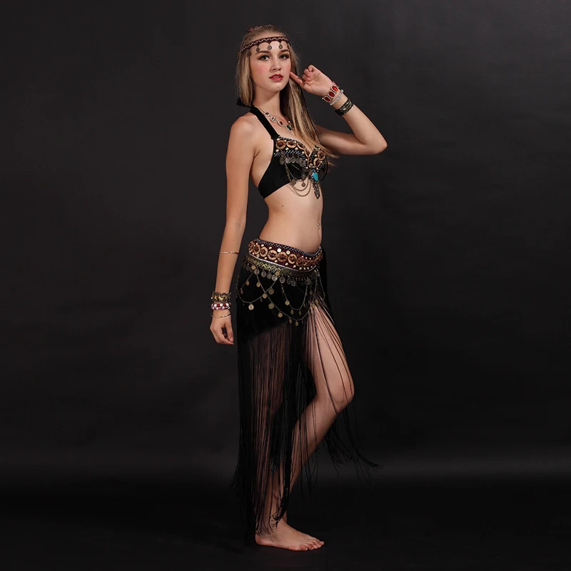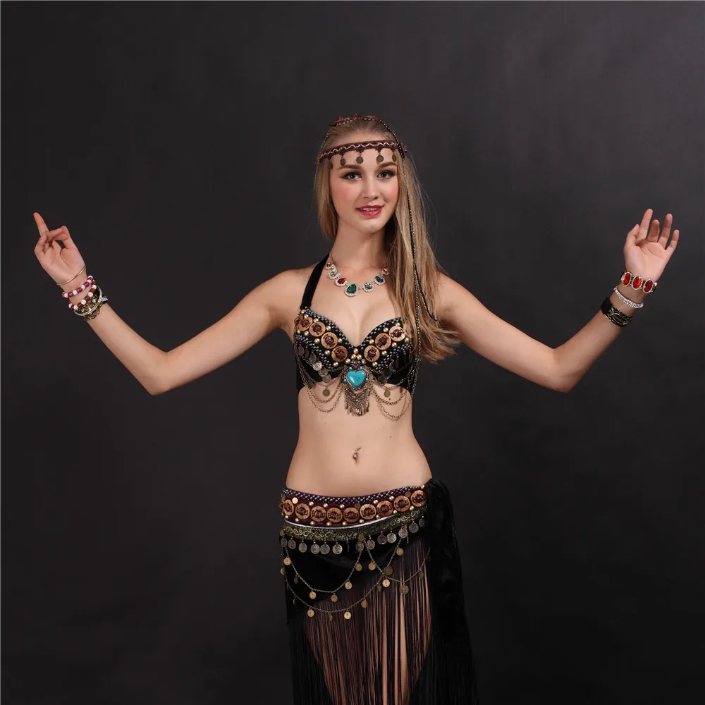 Новый костюм для танца живота в этническом стиле, 2 предмета, бюстгальтер и юбка 34B/C 36B/C 38B/C, 6 цветов
