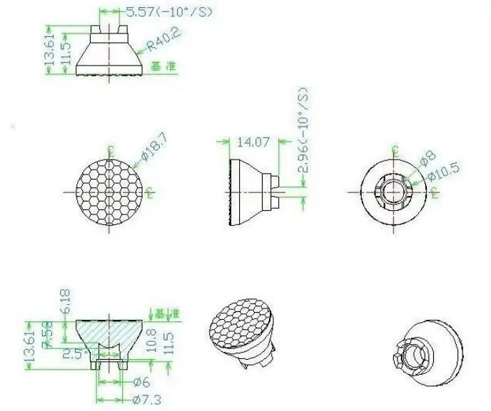 Оптическая линза со светодиодной подсветкой, для имитации люменов, с поверхностью из бисера, 30 градусов, с базовыми ножками, размер: 18,7x14,07 мм, ПММА, CTIG-18.7