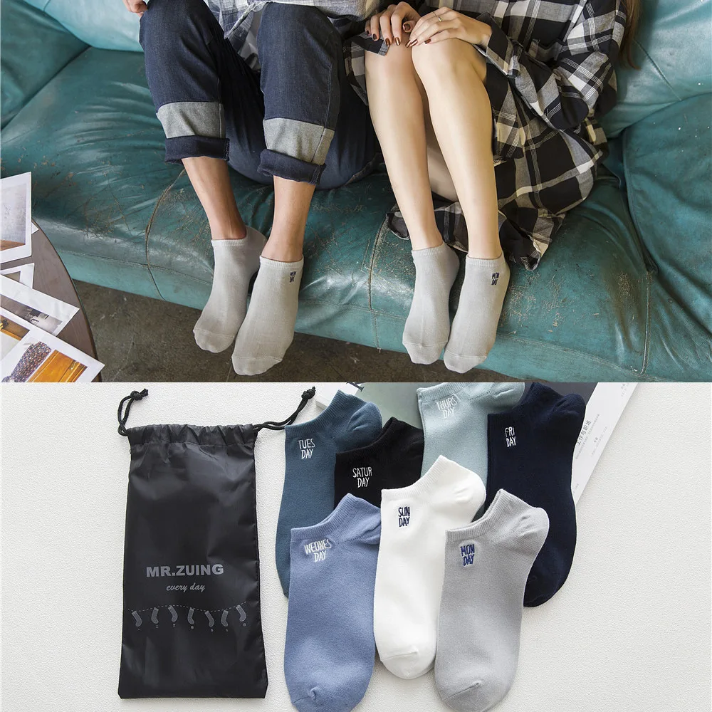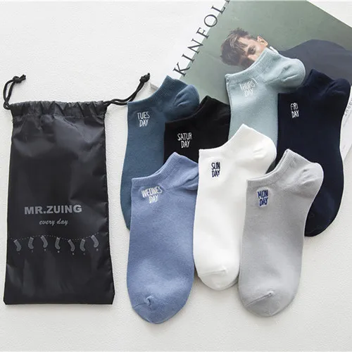Носки мужские короткие с вышивкой 24 см, хлопок, цвет в ассортименте, 7 пар
